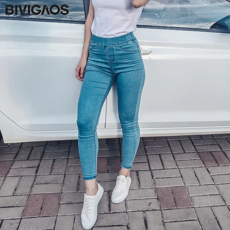 Special Offer BIVIGAOS primavera otoño mujer Simple Jeans básicos pantalones vaqueros elásticos lápiz Jean Leggings Pantalones Jeggings para pantalones Jeans para mujer Discount 26% Today!