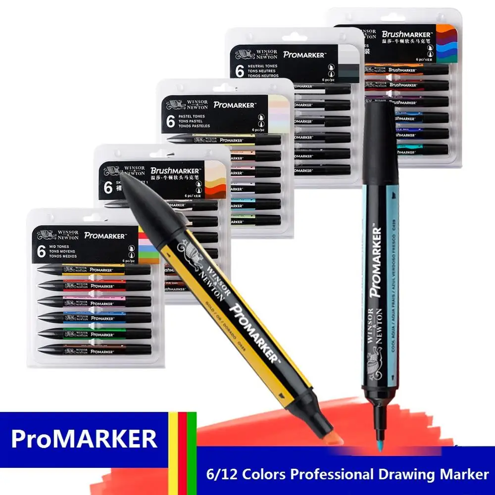 Special Offer Bolígrafo rotulador profesional WINSOR NEWTON 6 12 colores de doble cara (punta redonda y oblicua) Diseño de dibujo rotulador pluma arte suministros Discount 34% Today!