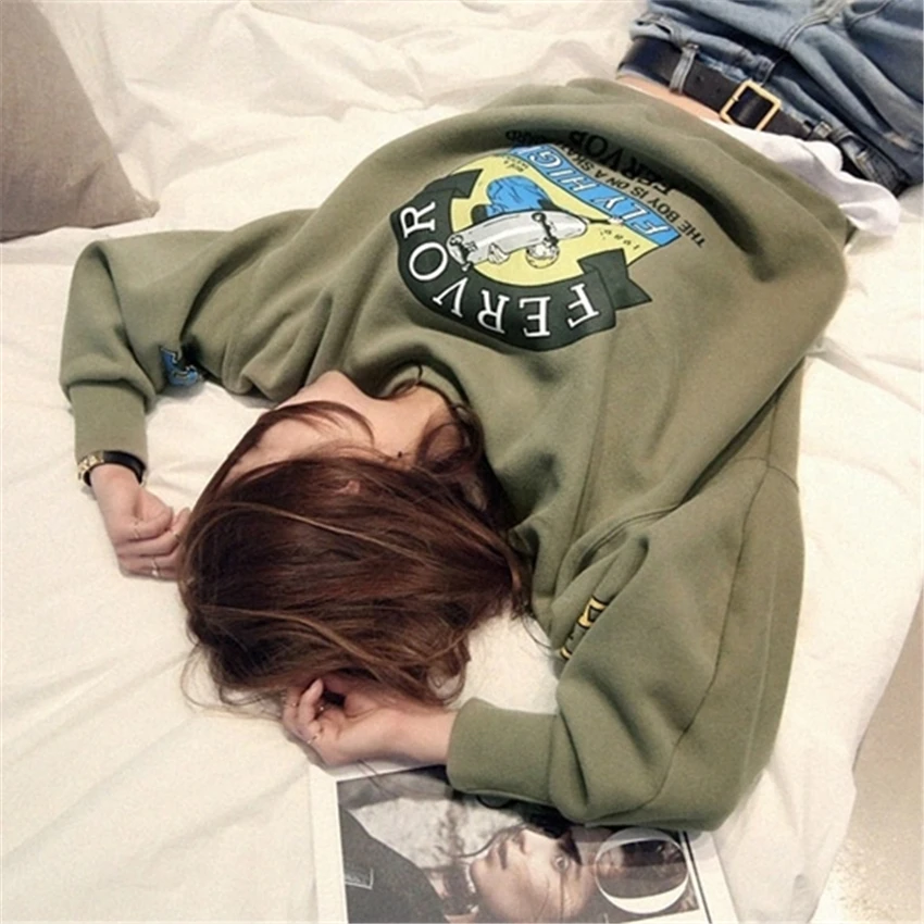 Special Offer 2019 invierno otoño nuevo Harajuku divertido chándal de dibujos animados para mujeres Pullover sudaderas con capucha de lana suelta sudadera femenina verde ejército 2XL Discount 37% Today!