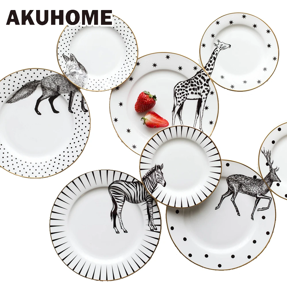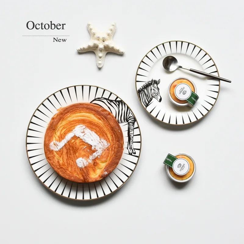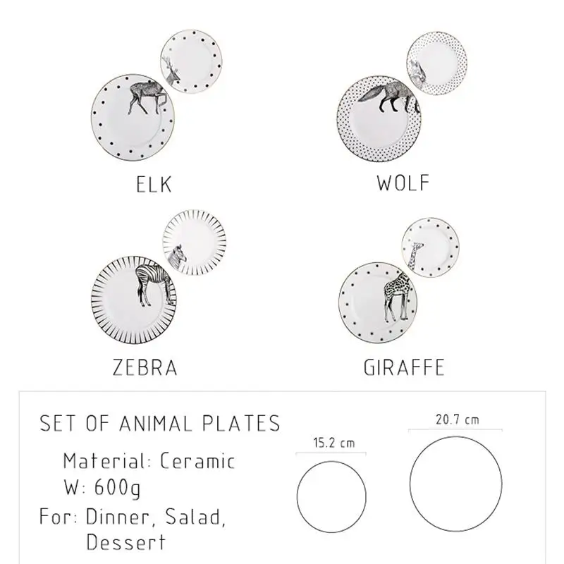Special Offer 2 uds. De 6 y 8 pulgadas Juego de placas de cerámica con animales, placas con patrón de cebra y jirafa de zorro, plato de carne pastel para el desayuno, Plato de frutas Discount 39% Today!