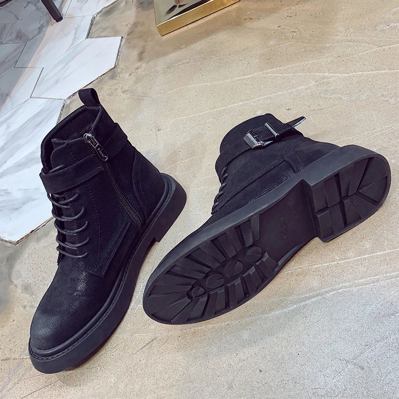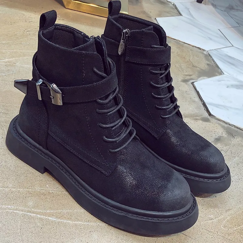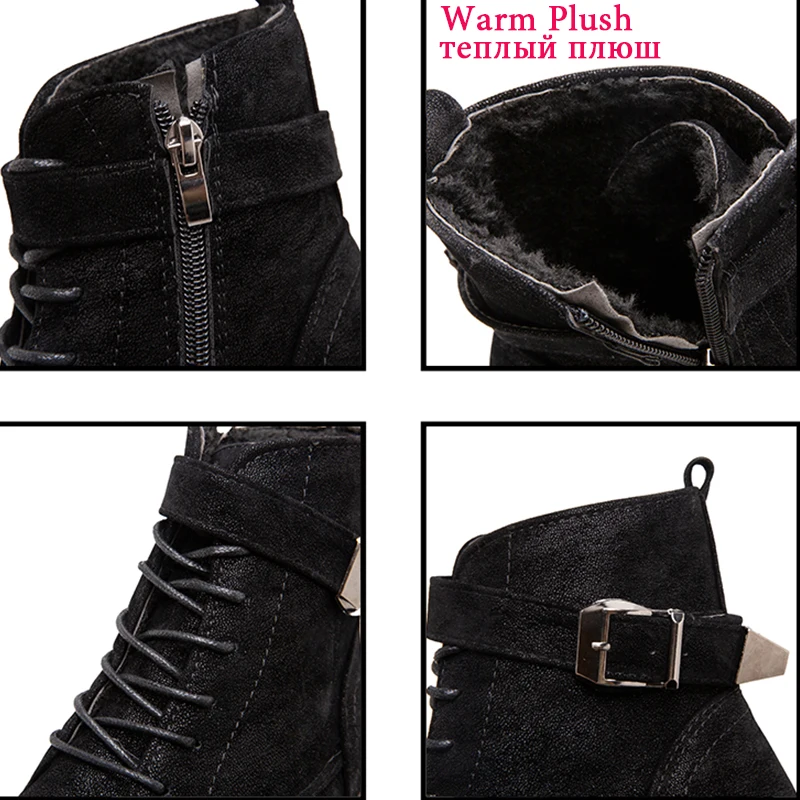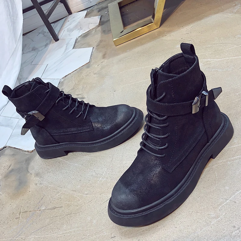 Special Offer 2019 nuevas Botas de plataforma de invierno zapatos de Mujer Botas Martin negras de goma Botas de cuero de encaje hasta el tobillo de combate señoras hebilla Botas Mujer Discount 43% Today!