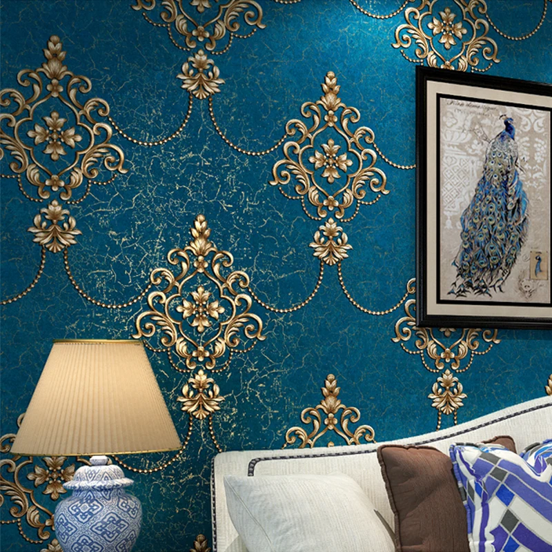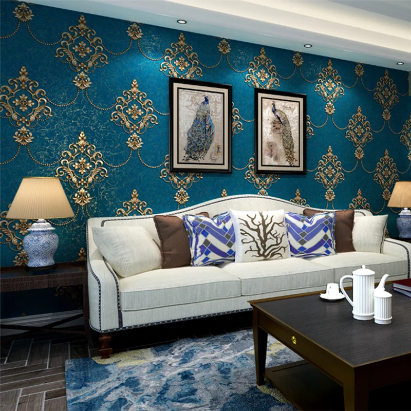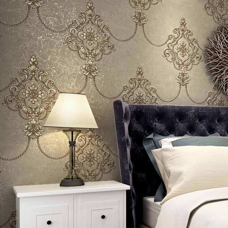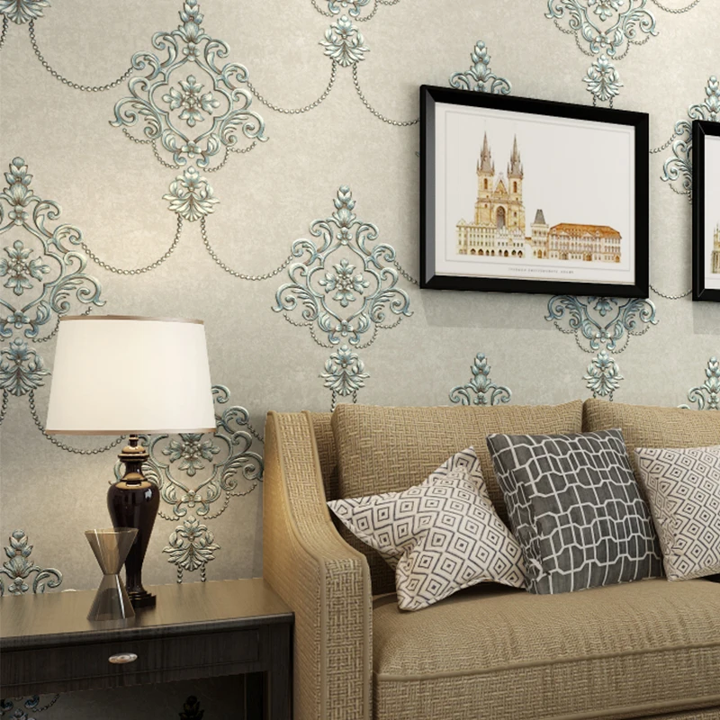 . (45% Off) Comprar Papel pintado de Damasco de lujo de estilo europeo rollo 3D en relieve no tejido papel grueso decoración de pared fondos de pared para sala de estar Online Baratos.