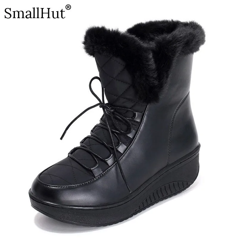 . (49% Off) Comprar Botas de nieve de plataforma con cordones para mujer zapatos planos de moda de invierno de PU D073 botas de tobillo de punta redonda de felpa blanca y negra para mujer Online Baratos.