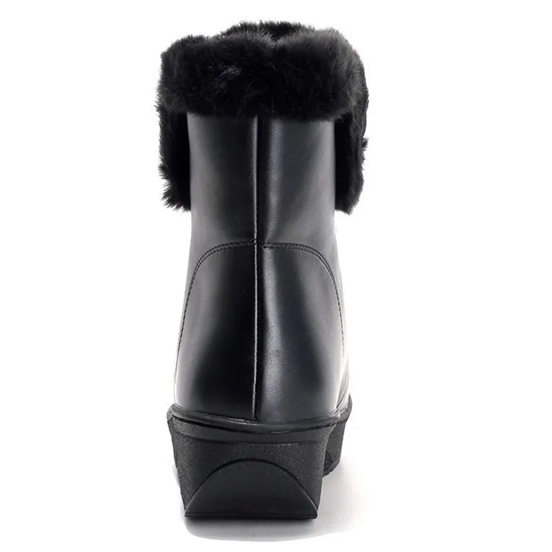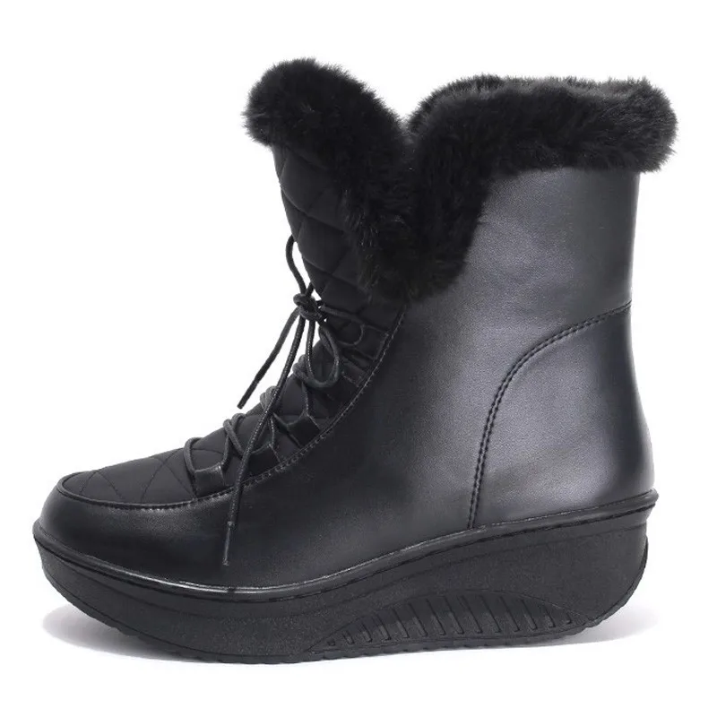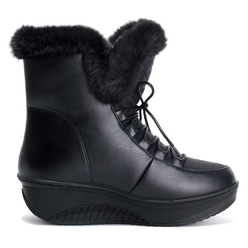 Special Offer Botas de nieve de plataforma con cordones para mujer zapatos planos de moda de invierno de PU D073 botas de tobillo de punta redonda de felpa blanca y negra para mujer Discount 49% Today!