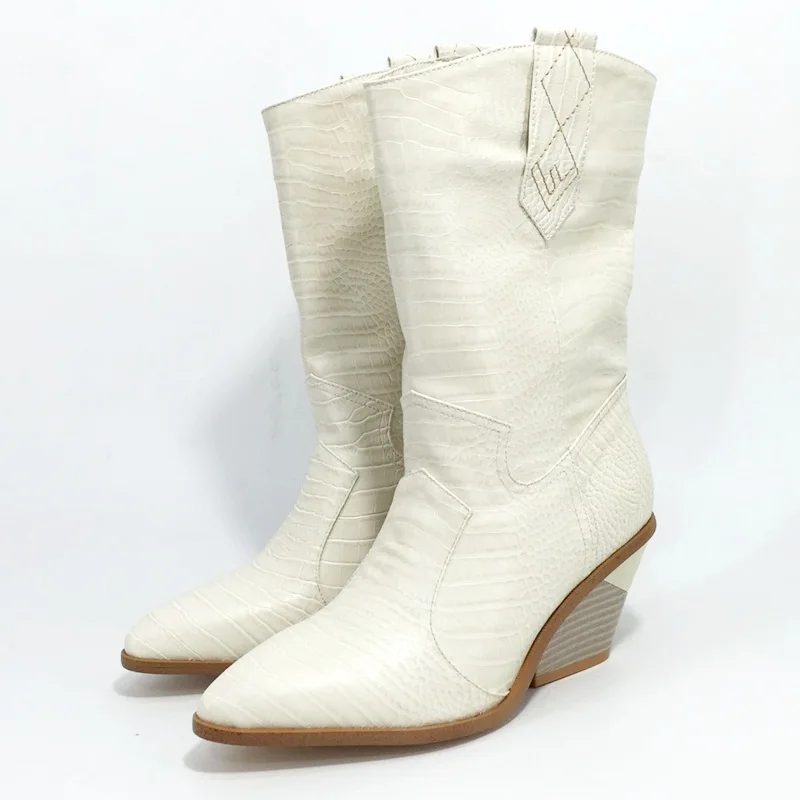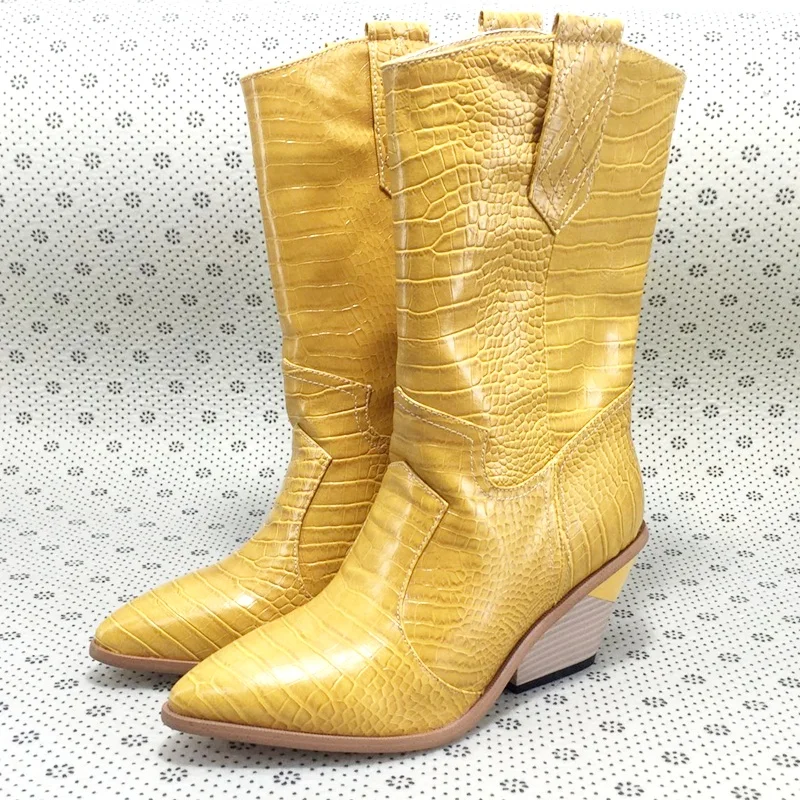 Special Offer De moda de la marca en relieve de microfibra de cuero de las mujeres botas de Punta botas de vaquero del Western mujeres cuñas en pista botas Discount 49% Today!