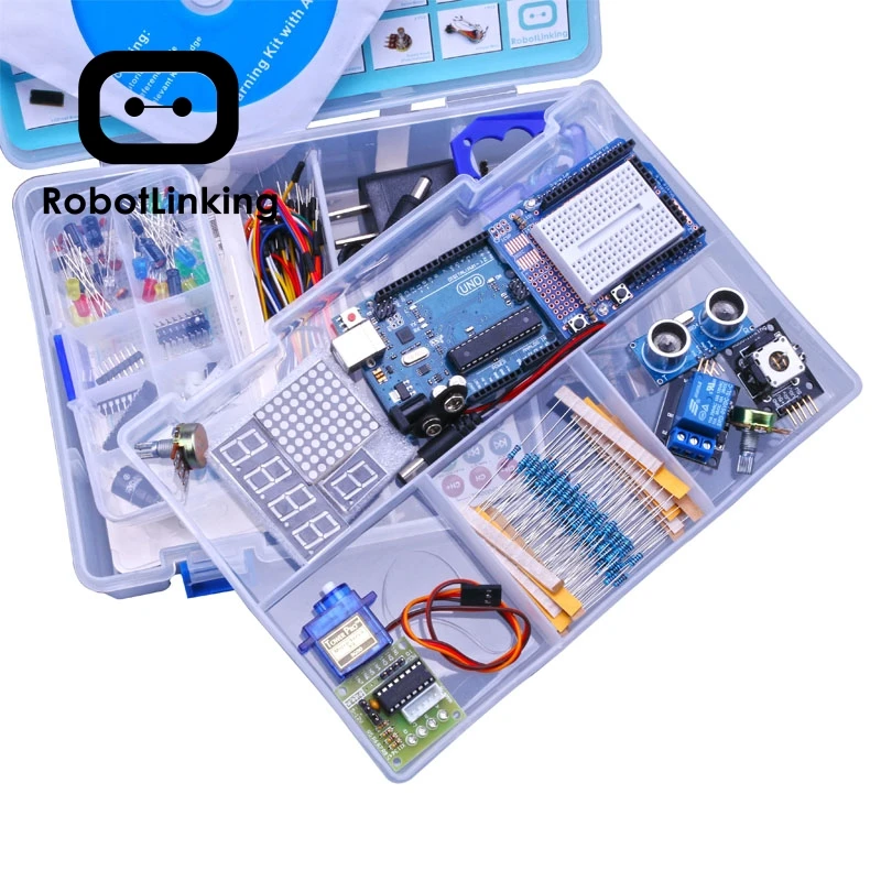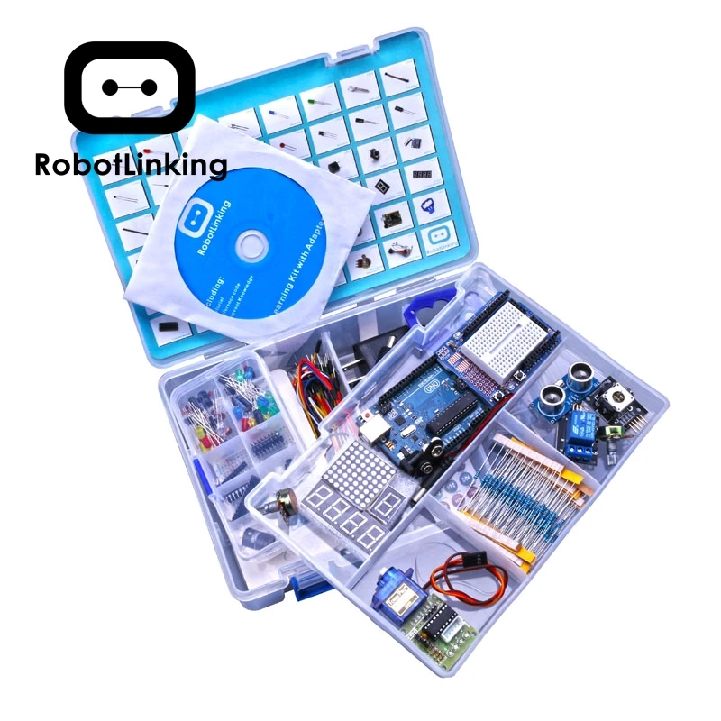 Special Offer Proyecto Robotlinking UNO el Kit de Inicio más completo para Arduino Mega2560 UNO con Tutorial Fuente de alimentación Servo Motor paso a paso Discount 5% Today!