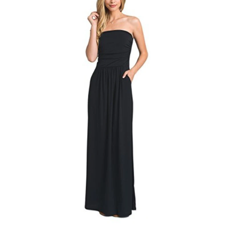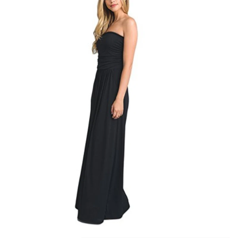 Special Offer UZZDSS mujer Bandeau vacaciones sin hombro largo vestido de verano sólido Maxi vestido negro dropshipping Discount 50% Today!