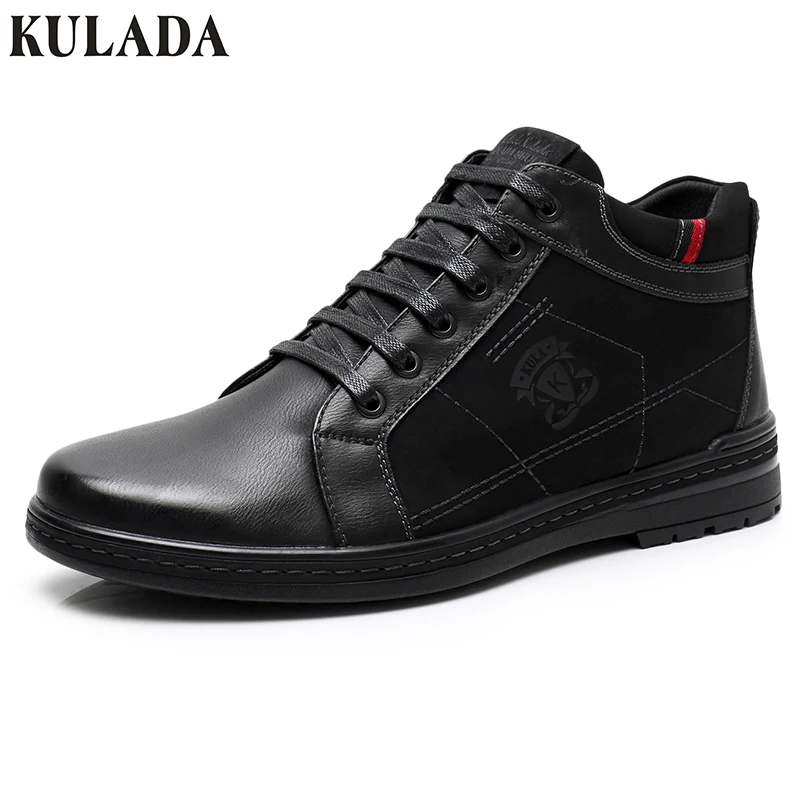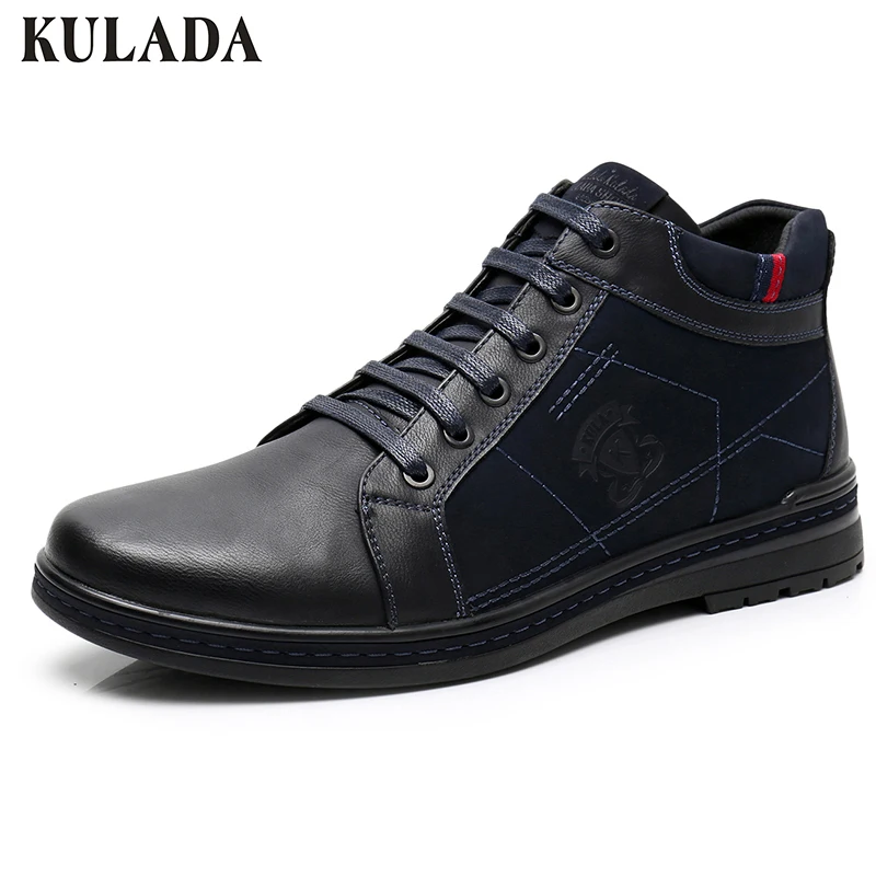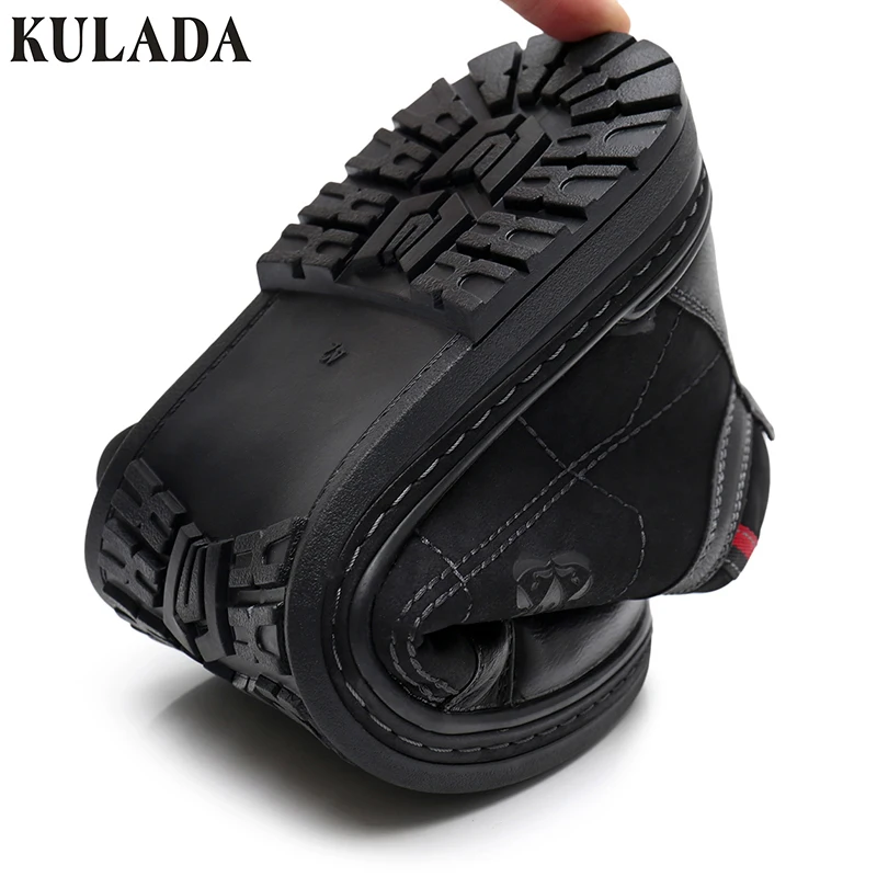Special Offer KULADA de alta calidad botas de hombre de invierno de piel gruesa zapatos de tobillo botas casuales con cremallera lateral para hombre hecho a mano calzado de gamuza de vaca Discount 53% Today!