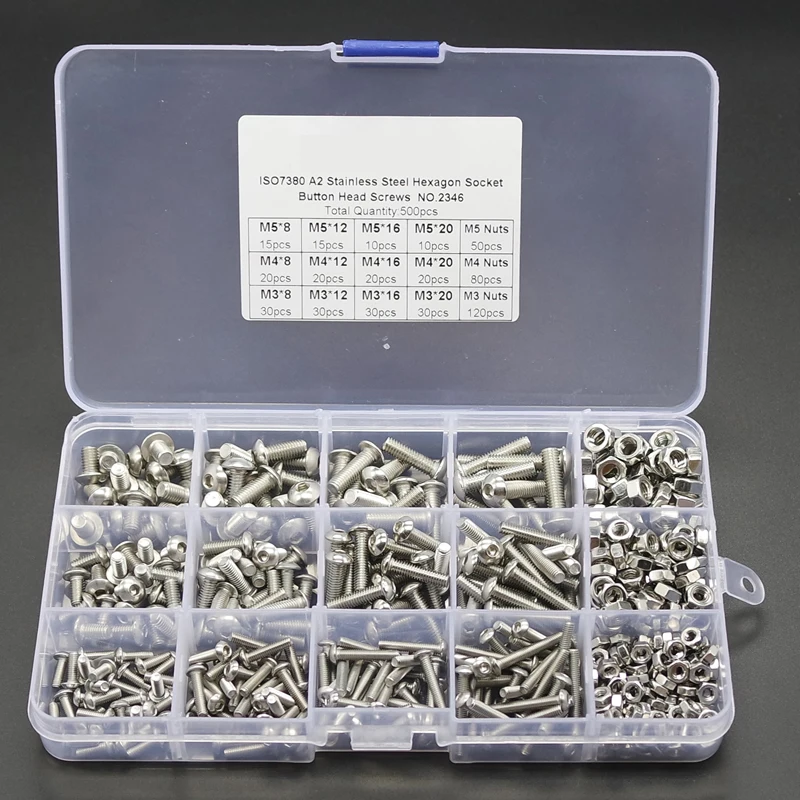 . (24% Off) Comprar 500 Uds M3 M4 M5 A2 Acero inoxidable cabeza de botón ISO7380 tornillos hexagonales tornillos de enchufe hexagonal con tuercas surtido Kit venta al por menor caliente Online Baratos.