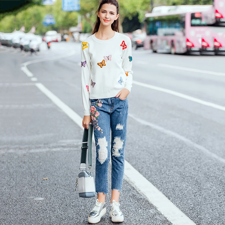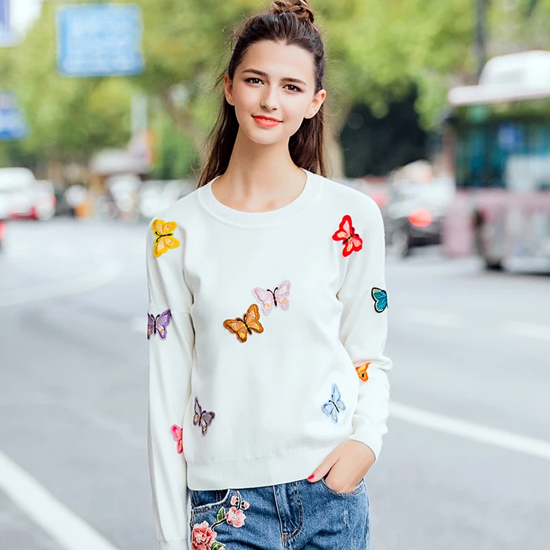 Special Offer Hiqh calidad Original estilo europeo nuevo otoño Winer mujeres mariposa de lujo tejer suéter caliente Casual Jersey tapas C 018 Discount 30% Today!