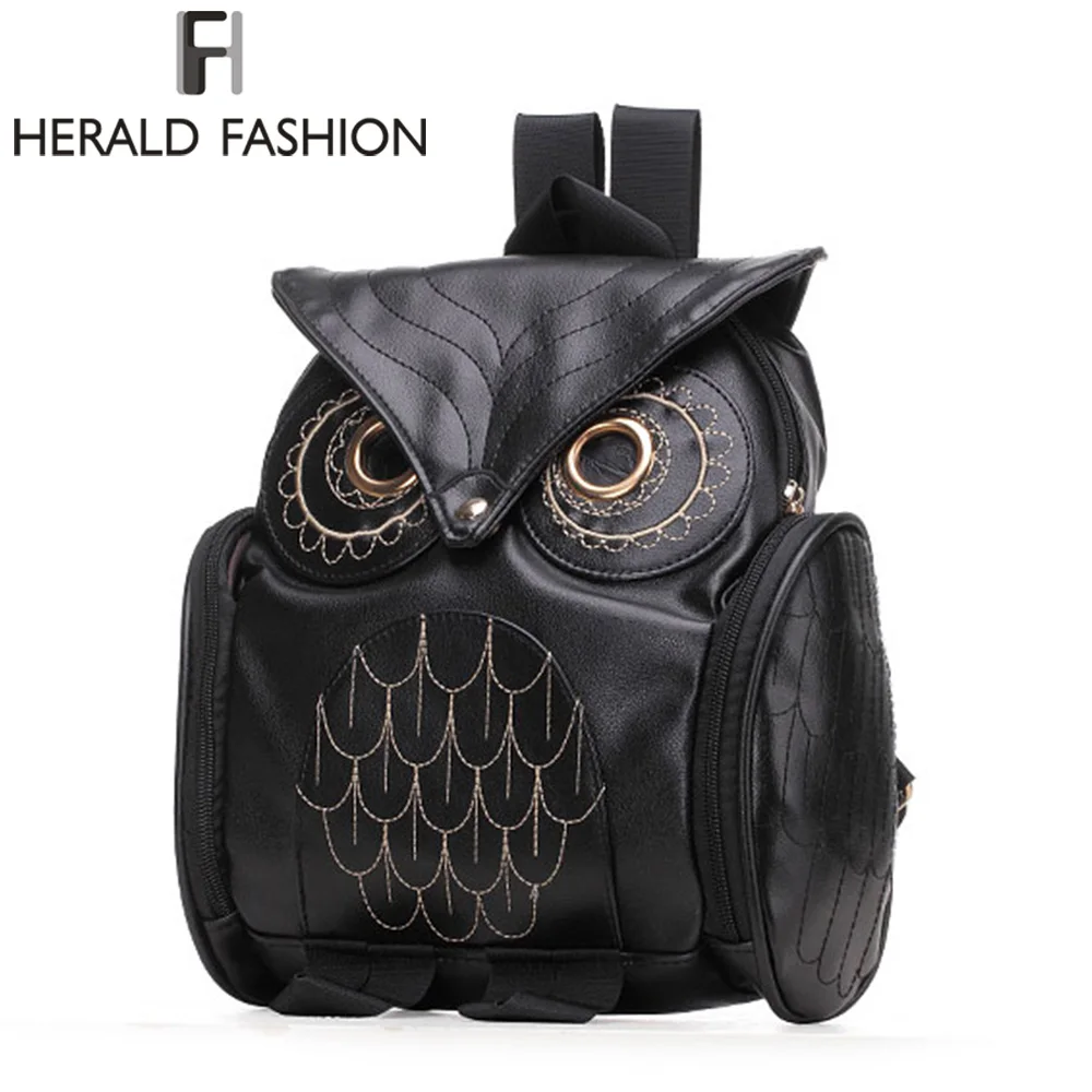 Special Offer Mochila De mujer 2017 nueva mochila de cuero PU negro con estilo búho mochila de hombro para mujer bolsos escolares Herald moda mochila Discount 33% Today!
