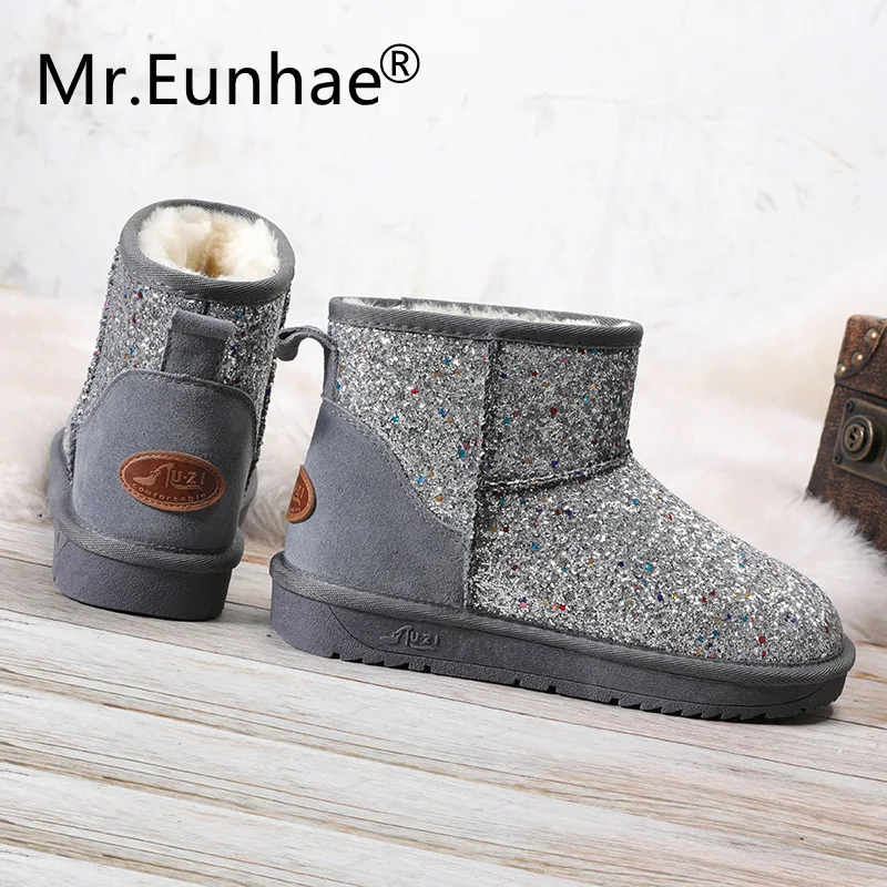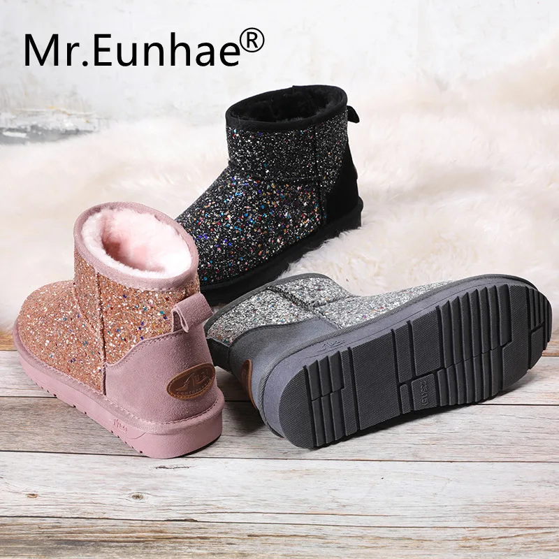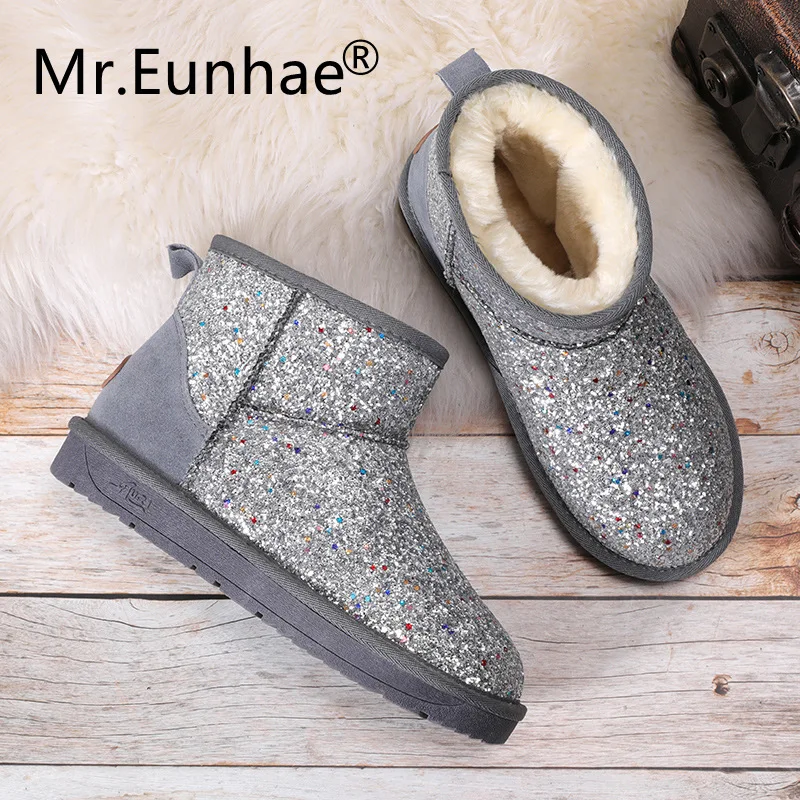 Special Offer Bling Sequined Cloth mujeres estudiantes invierno nieve botas cálidas de felpa tobillo botas UGS Australia antideslizantes botas de goma Discount 38% Today!