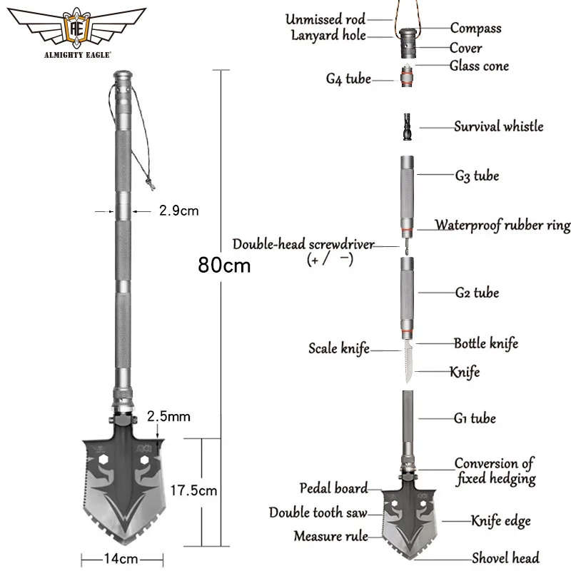 Special Offer Poderoso águila profesional de supervivencia al aire libre táctica multifuncional pala plegable herramienta ET equipo de camping serio herramienta del ejército Discount 47% Today!
