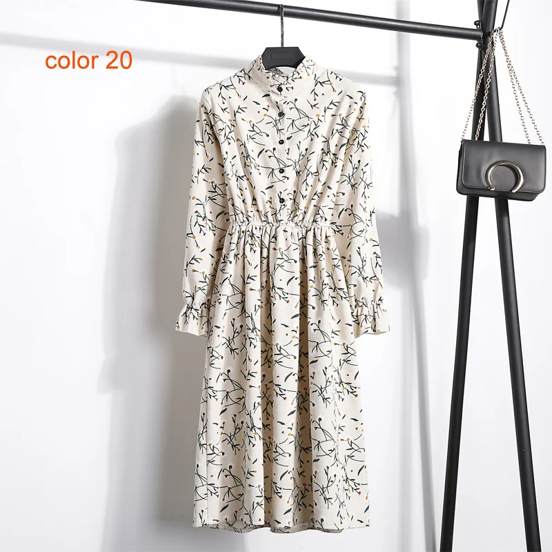 Special Offer Vestido de pana suave con estampado Floral para mujer Otoño Invierno vestido de cuello alto para fiesta femenina Vestidos sueltos cintura elástica para la playa Discount 47% Today!