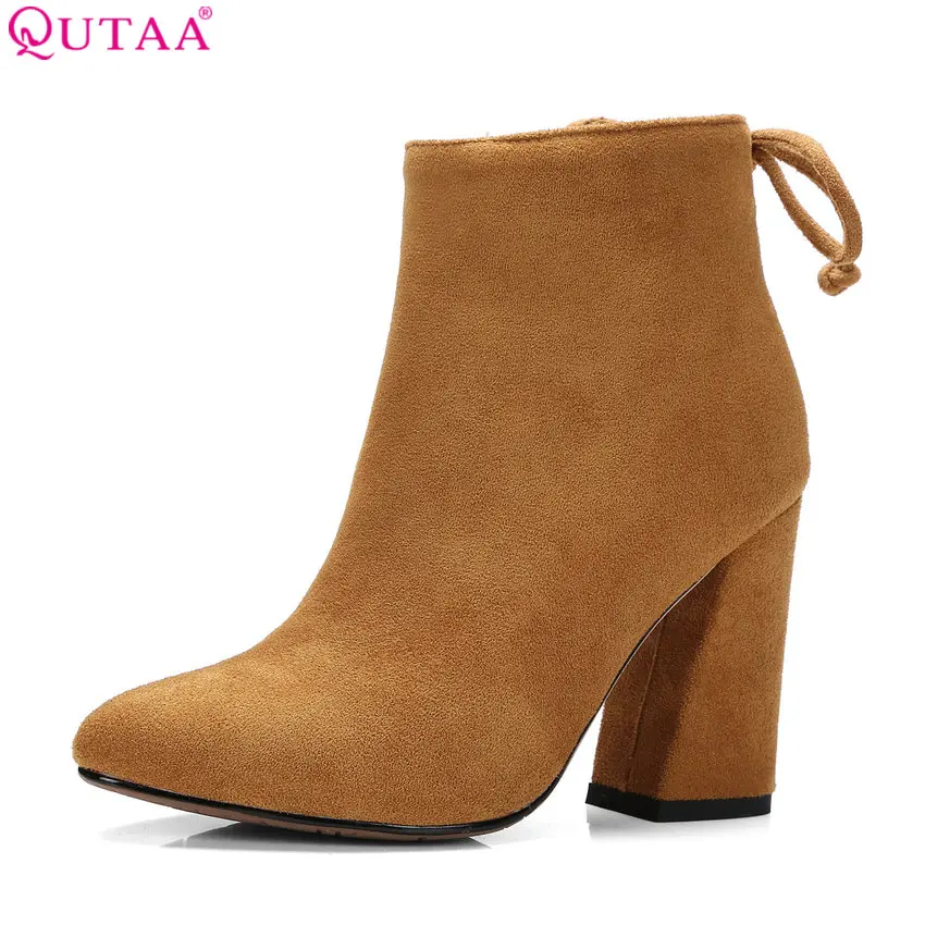 Special Offer QUTAA 2020 mujeres zapatos de tobillo botas con banda elástica elástico tela pezuña de tacón alto de mujer de moda Zapatos de fiesta negro caliente tamaño 34 43 Discount 48% Today!