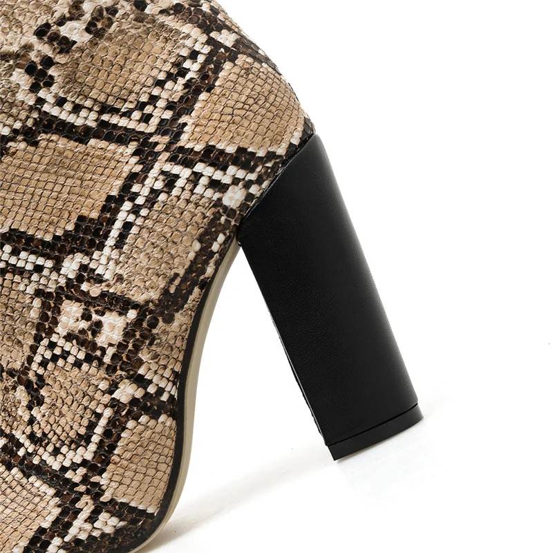 Special Offer 2019 botas de mujer de talla grande 11cm tacones altos fetiche Stripper Borgoña botas de tobillo Prom serpiente estampado tacones de bloque grueso zapatos Rojos Discount 52% Today!