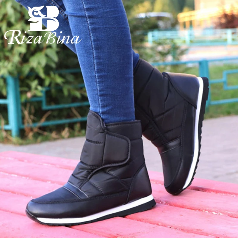 Special Offer RIZABINA tamaño 35 42 botas de nieve para mujer cálidos zapatos de invierno de piel gruesa mujer impermeable moda plataforma botines para mujer calzado de piel Discount 53% Today!