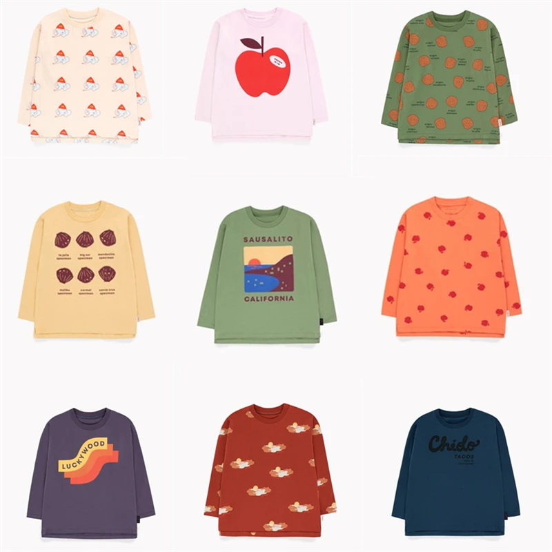 Special Offer 2019 niño Niñas Ropa de otoño Tops de marca de los niños Camiseta de manga larga bebé Apple shell impresión Tops niños suerte carta Discount 14% Today!