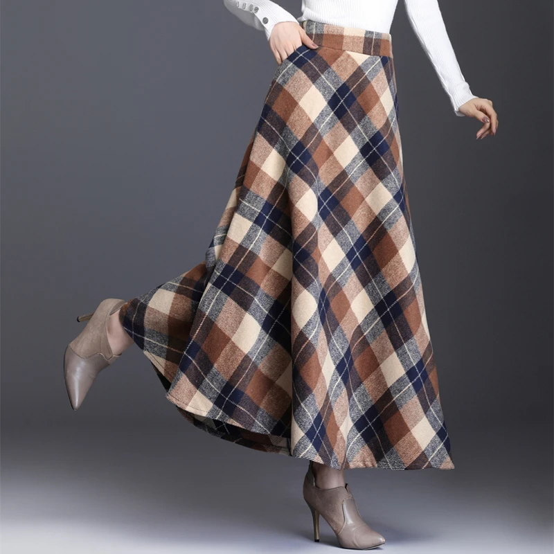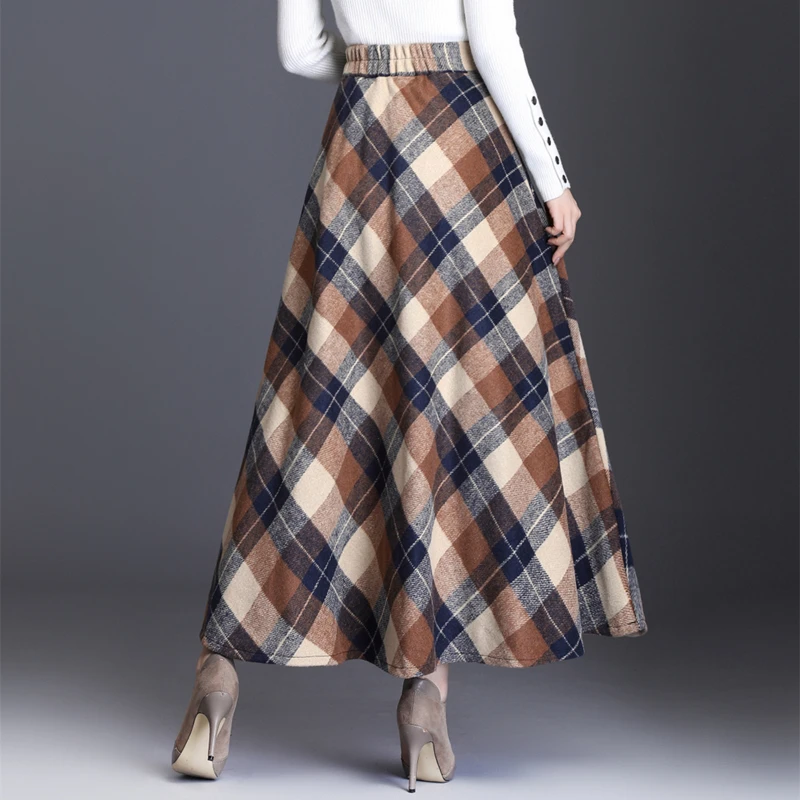 Special Offer Falda de marca HAYBLST para mujer 2019 Otoño Invierno Plus Size3XL elegante estilo coreano a la moda a cuadros cintura alta ropa larga engrosamiento Discount 31% Today!