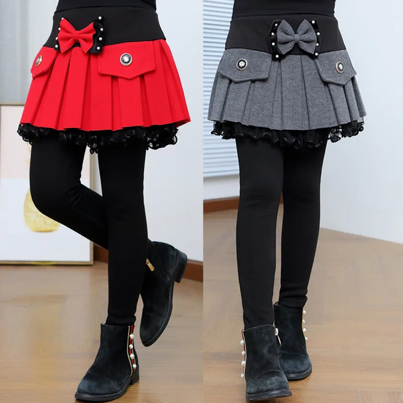 . (40% Off) Comprar Leggings para niñas pantalones de niñas falda falsa de dos piezas más terciopelo grueso desgaste exterior pantalones 100 160 alta calidad Online Baratos.