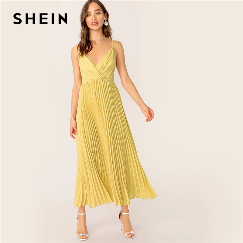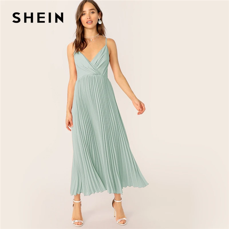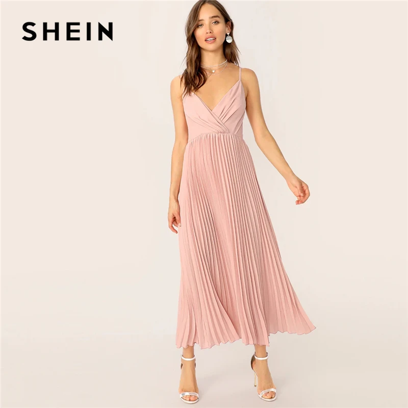 Special Offer SHEIN Surplice Neck plisado Cami vestido de verano en forma y llamarada vestido rosa Pastel romántico mujeres sin mangas Spaghetti Correa vestidos Discount 45% Today!
