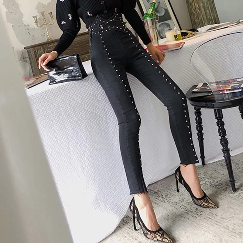 Special Offer TWOTWINSTYLE Heavy jeans con ribetes para mujer túnica de cintura alta pantalones vaqueros de longitud al tobillo moda femenina pantalones lápiz otoño 2019 Discount 47% Today!