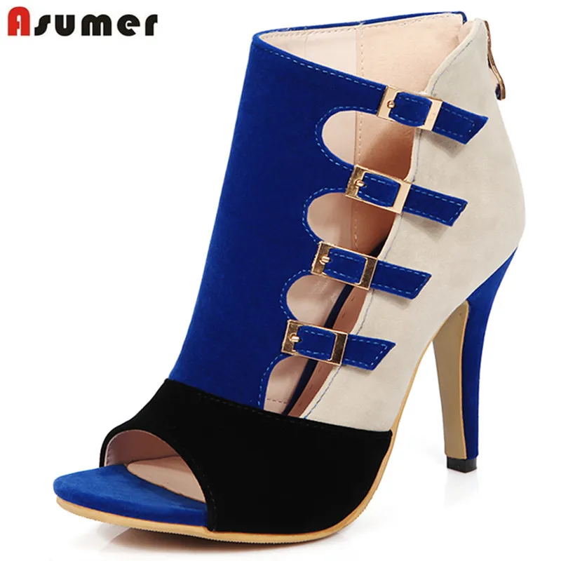 Special Offer ASUMER de talla grande 33 46 nuevas botas de verano de moda más hebilla peep toe tacones altos delgados botas de mujer de color mezclado botines Discount 48% Today!