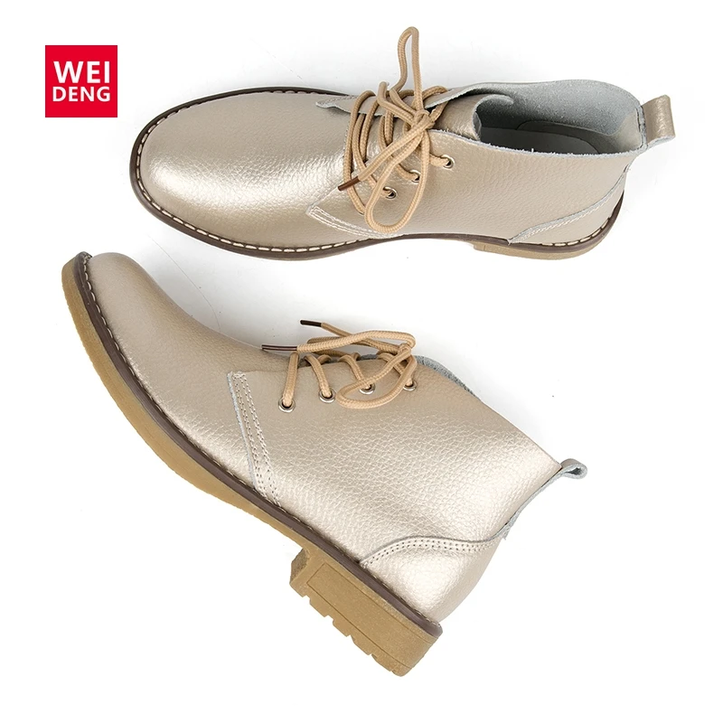 Special Offer Botas de tobillo de cuero genuino WeiDeng mujeres clásicas Matin moda pisos invierno encaje arriba alta superior Casual zapatos impermeables Mujer Discount 0% Today!