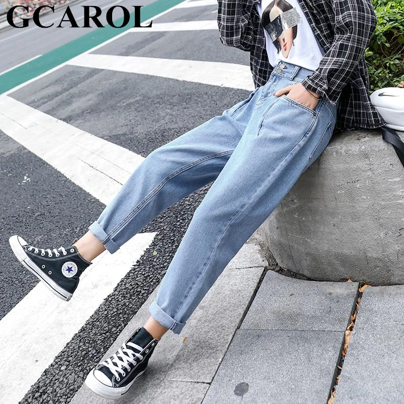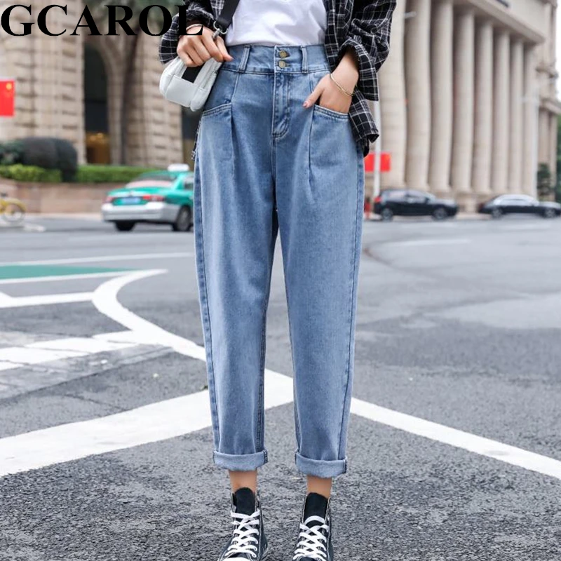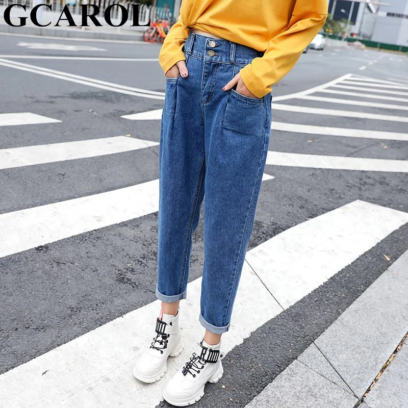 . (30% Off) Comprar Estilo Preppy estilo medio cintura Retro pantalones viejos cintura elástica pierna ancha pantalones hasta el tobillo Streetwear Denim Jeans de talla grande 25 32 Online Baratos.