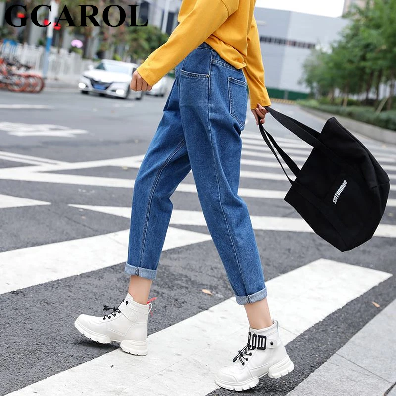 Special Offer Estilo Preppy estilo medio cintura Retro pantalones viejos cintura elástica pierna ancha pantalones hasta el tobillo Streetwear Denim Jeans de talla grande 25 32 Discount 30% Today!