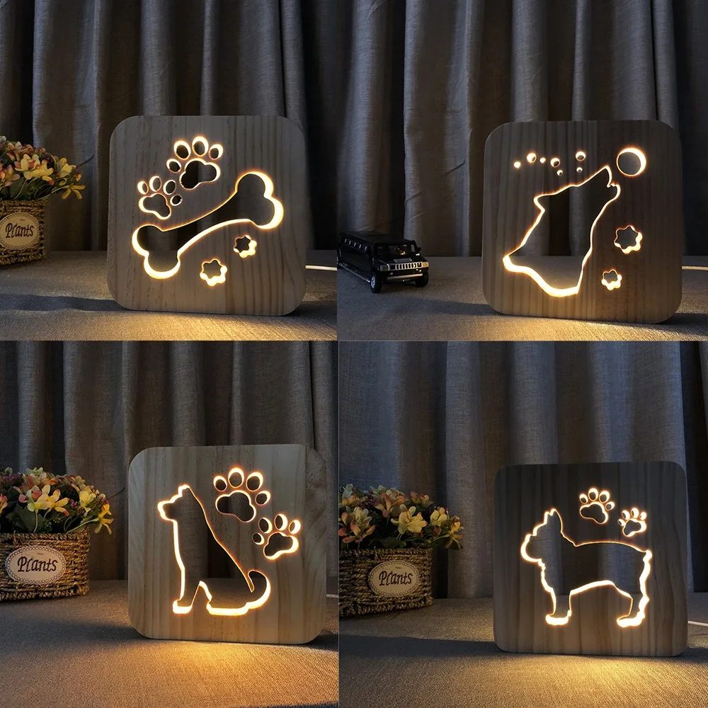 Special Offer Madera perro pata gato Animal noche luz Bulldog francés Luminaria 3D Lámpara USB Powered escritorio luces para bebé Navidad Año nuevo regalo Discount 30% Today!