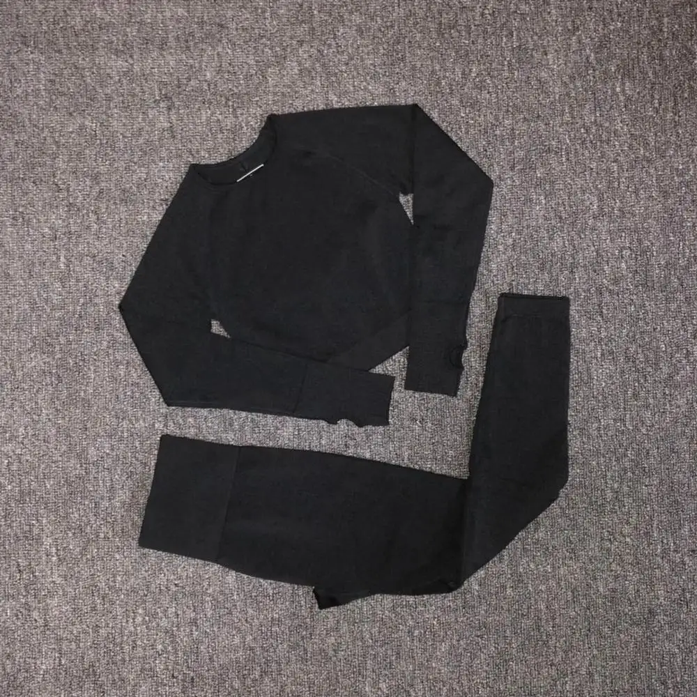 Special Offer Conjunto de Yoga de manga larga ropa deportiva para mujer prenda superior corta sin costuras + Leggings de Fitness chándal para mujer ropa de entrenamiento para correr Discount 35% Today!