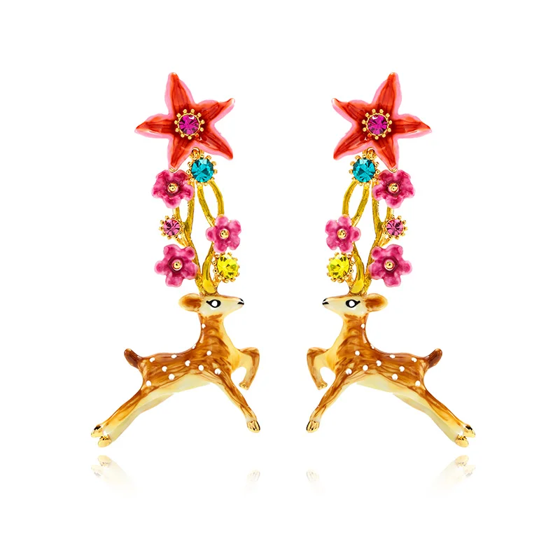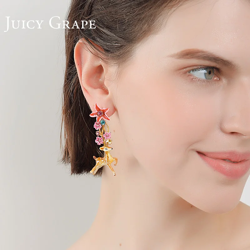 Special Offer Juicy Grape Jusan Deer Earrings pendientes exagerados de mujer esmalte glaseado diamantes de imitación pendientes largos Discount 40% Today!