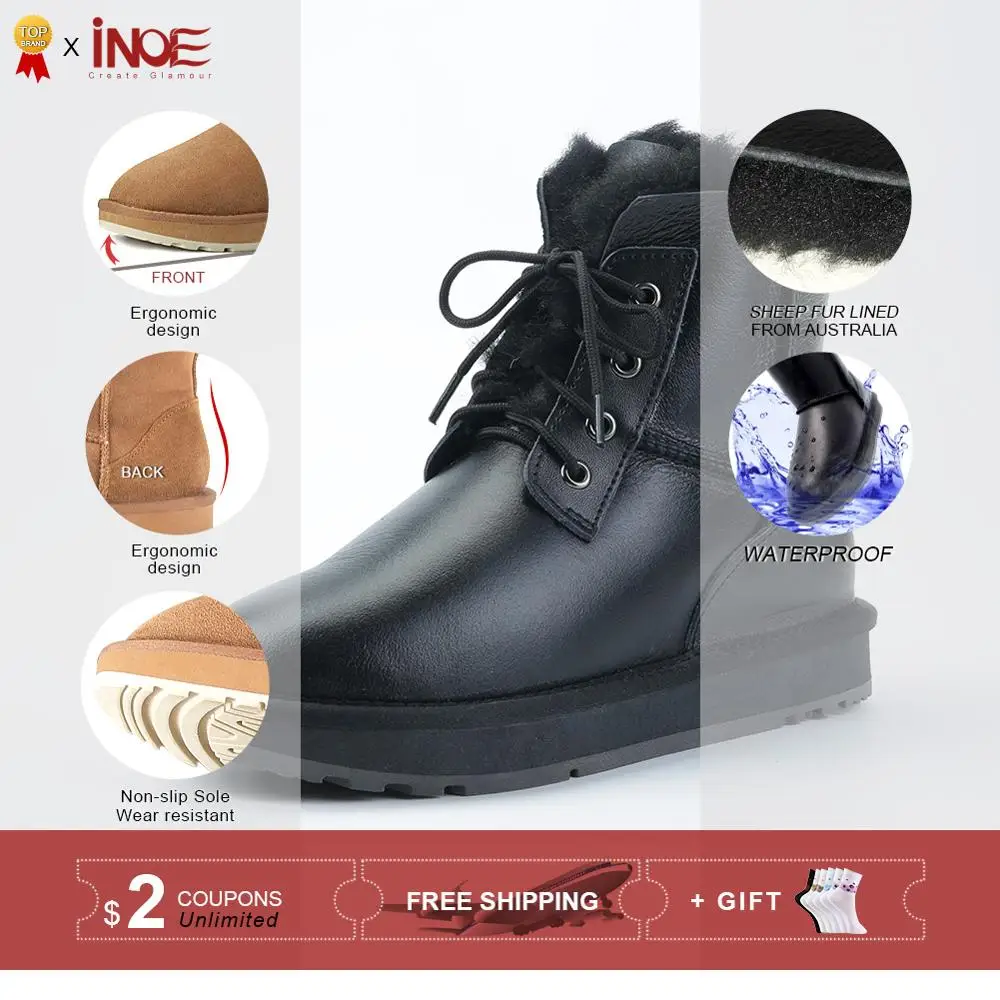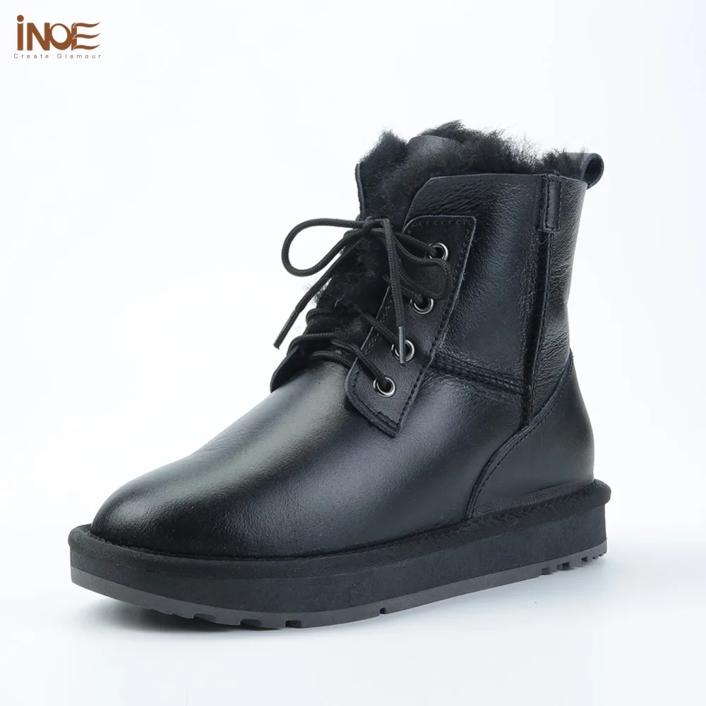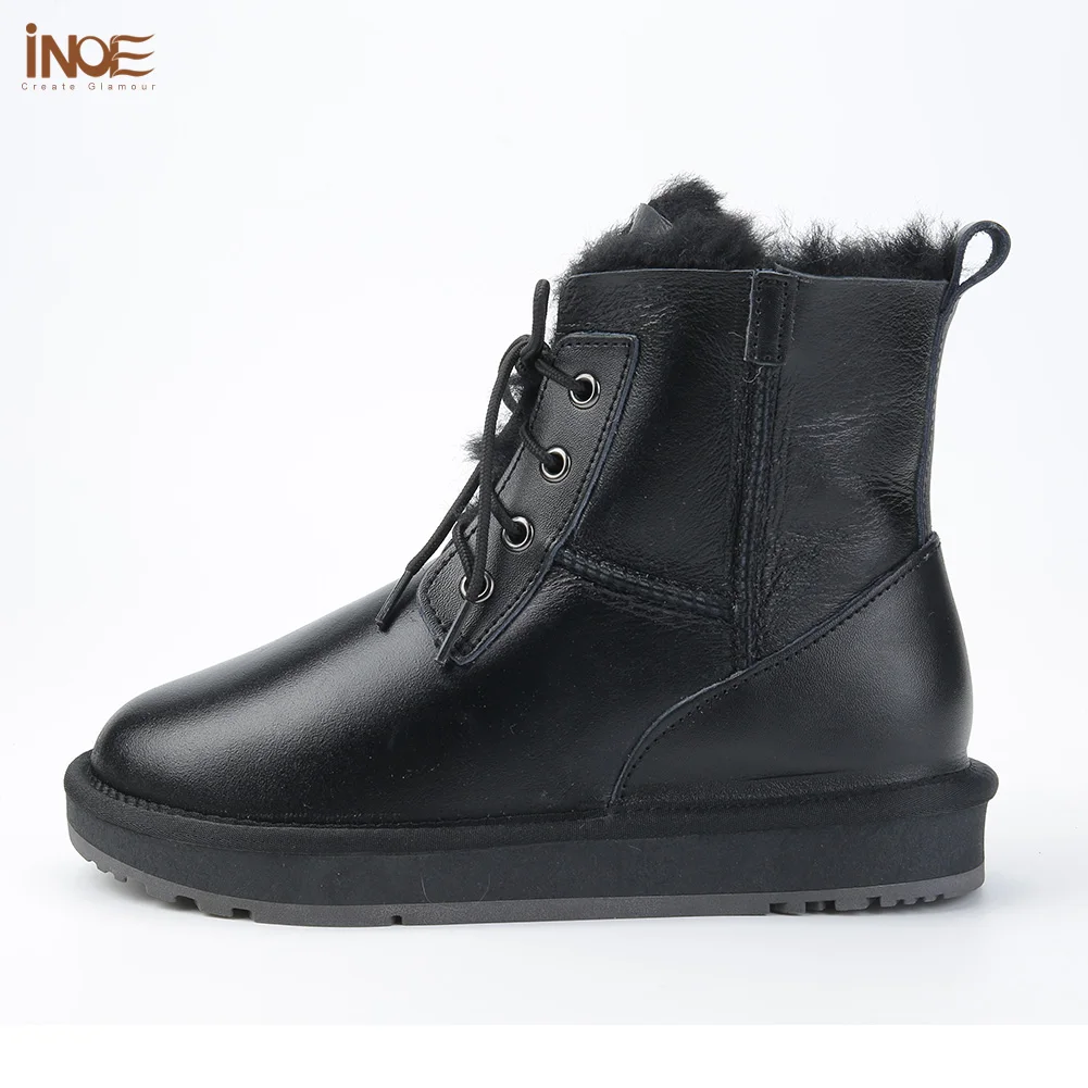 . (51% Off) Comprar Botas de Invierno para mujer, forrado de piel y lana, de piel de oveja, para mujer, botas cortas casuales de nieve, cálidas, impermeables, negras Online Baratos.
