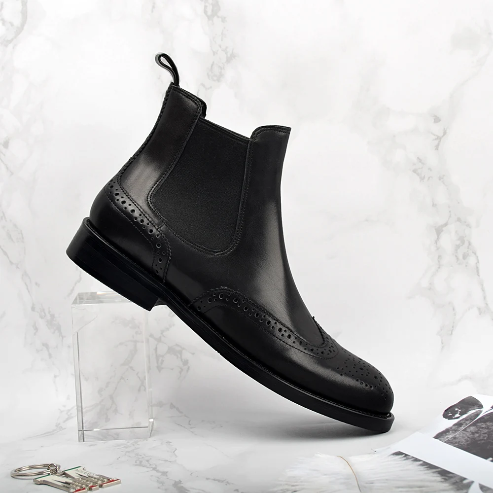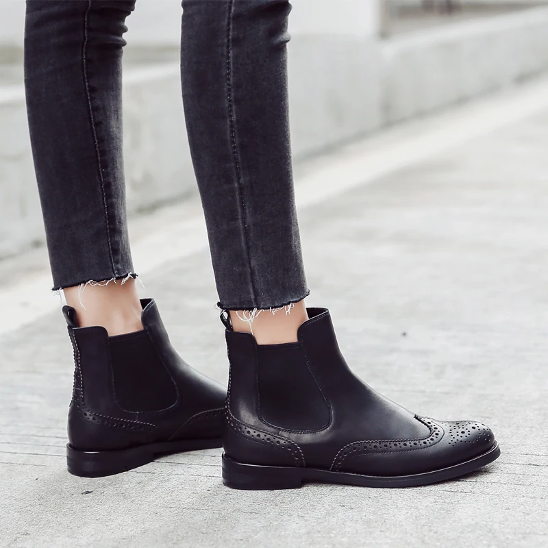 Special Offer Donna in de cuero genuino de las mujeres botas brogue tallado tobillo botas de moda Chelsea tacón bajo señora zapatos de Otoño de 2019, zapatos de las señoras Discount 58% Today!