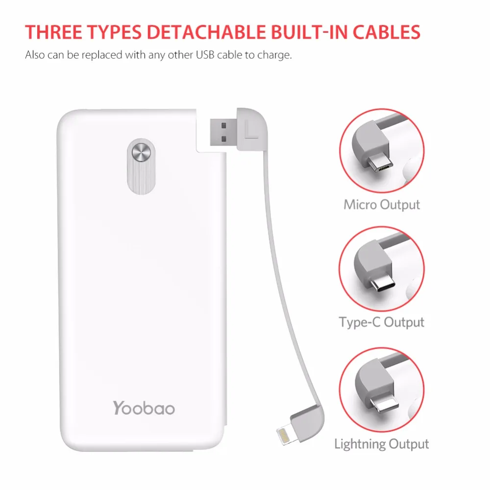 Special Offer Yoobao 10000mAh Cable incorporado banco de energía doble entrada USB batería externa Ultra delgado cargador portátil para Xiaomi huawei iponeX Discount 0% Today!