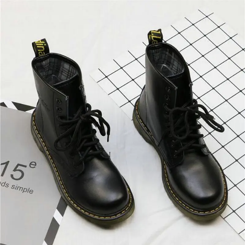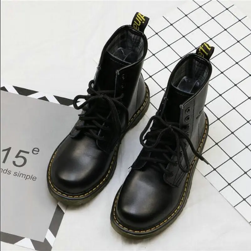 . (38% Off) Comprar Moda Retro mujer plataforma cuero antideslizante exterior piel botas de motocicleta vaca músculo invierno zapatos cortos tobillo nieve botas UU 59 Online Baratos.