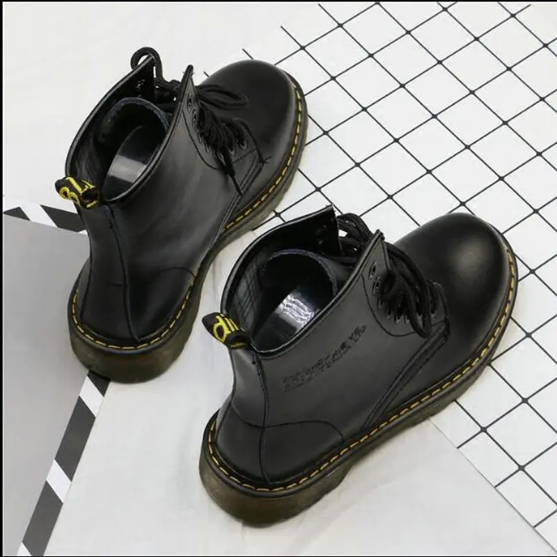 Special Offer Moda Retro mujer plataforma cuero antideslizante exterior piel botas de motocicleta vaca músculo invierno zapatos cortos tobillo nieve botas UU 59 Discount 38% Today!