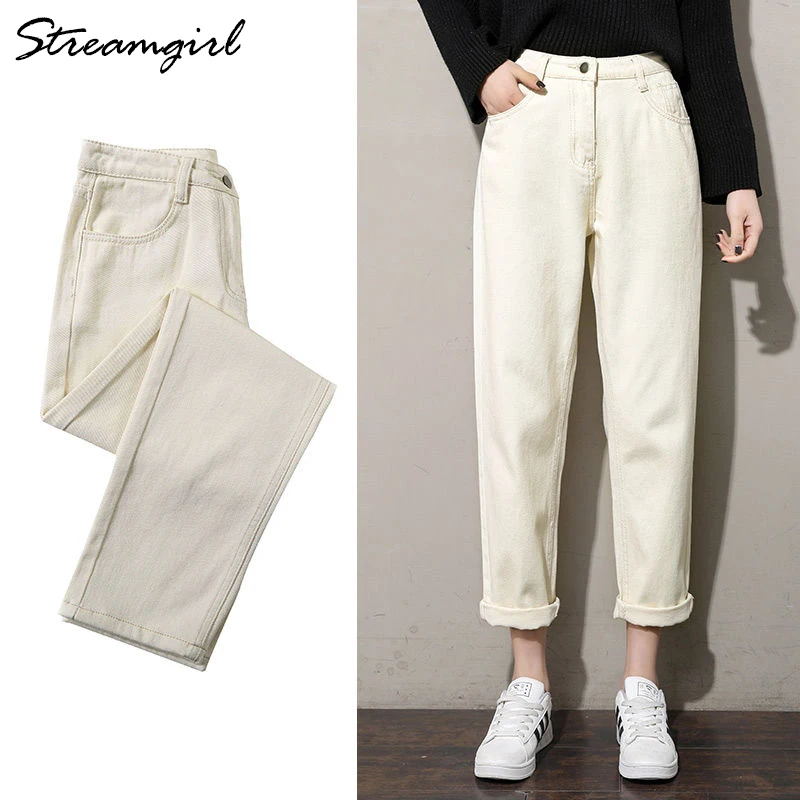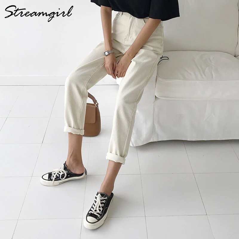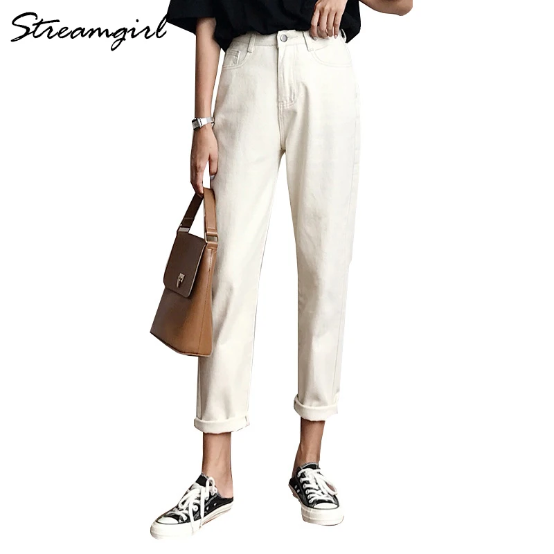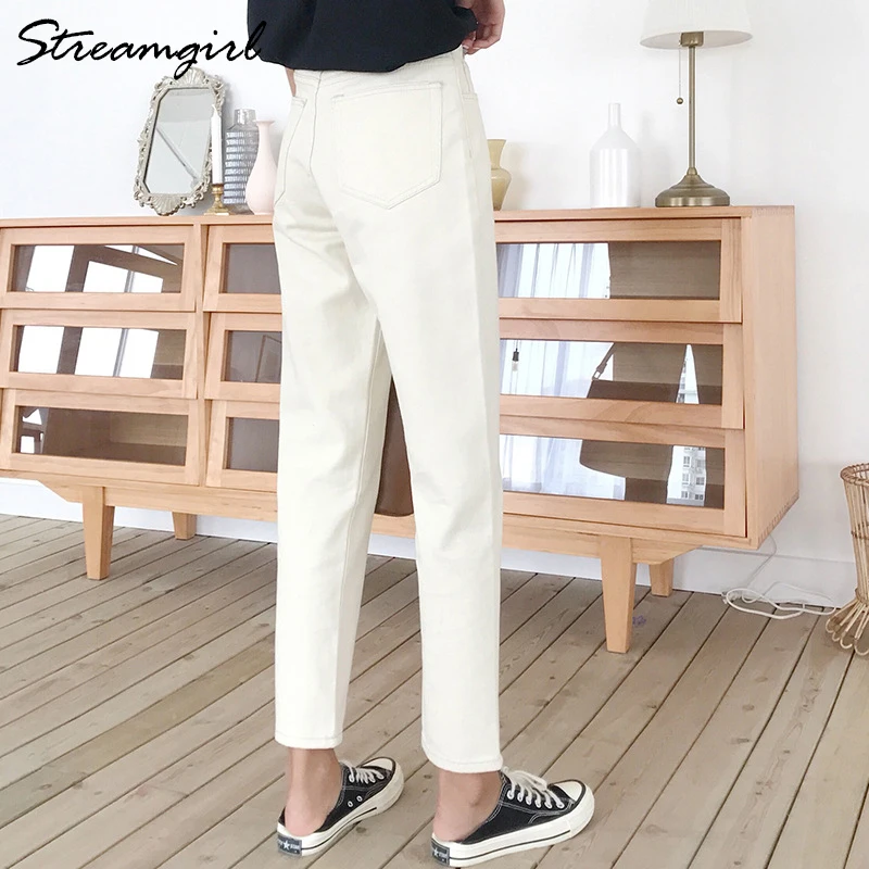 Special Offer Pantalones vaqueros anchos con cintura alta para mujer Harem Denim Pantalones 2019 para mujer Vaqueros blancos rectos de novio sueltos para mujeres pantalones Harem de algodón Discount 48% Today!