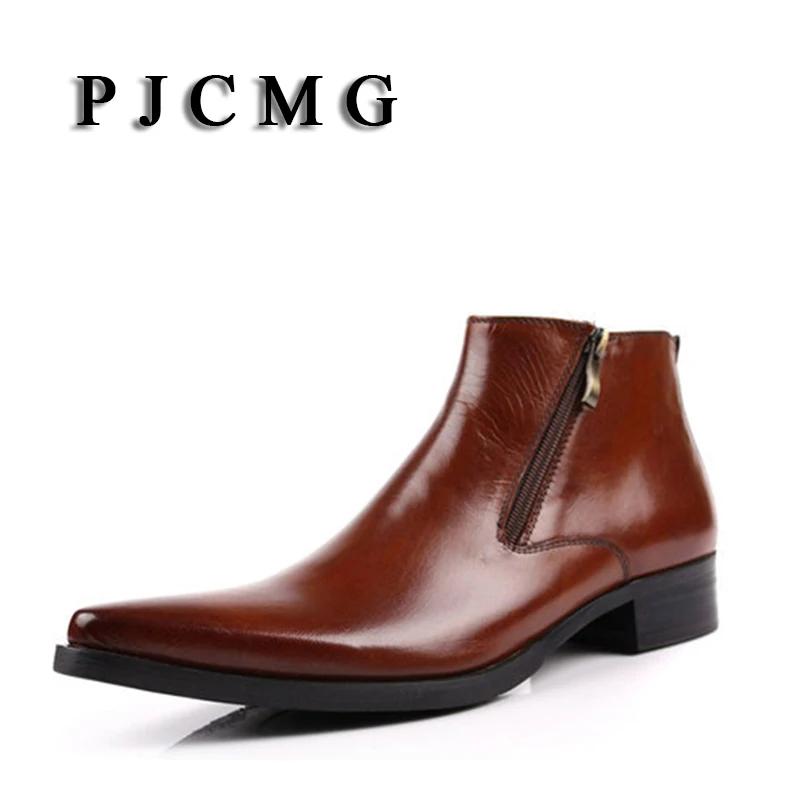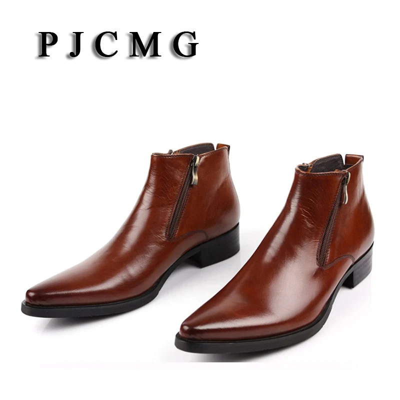Special Offer PJCMG nuevas botas de cuero de vaca botas de cuero suave genuino puntera transpirable patrones de Bullock Oxford Zapatos de vestir para hombres botas Discount 10% Today!