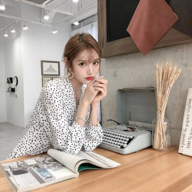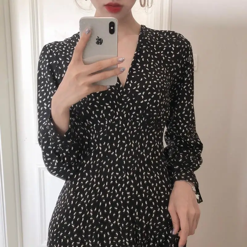 Special Offer Vestido retro mujeres calientes cintura delgada línea A elegante temperamento señora estilo coreano vintage dot cuello en v vintage camisa vestido de cintura alta Discount 11% Today!