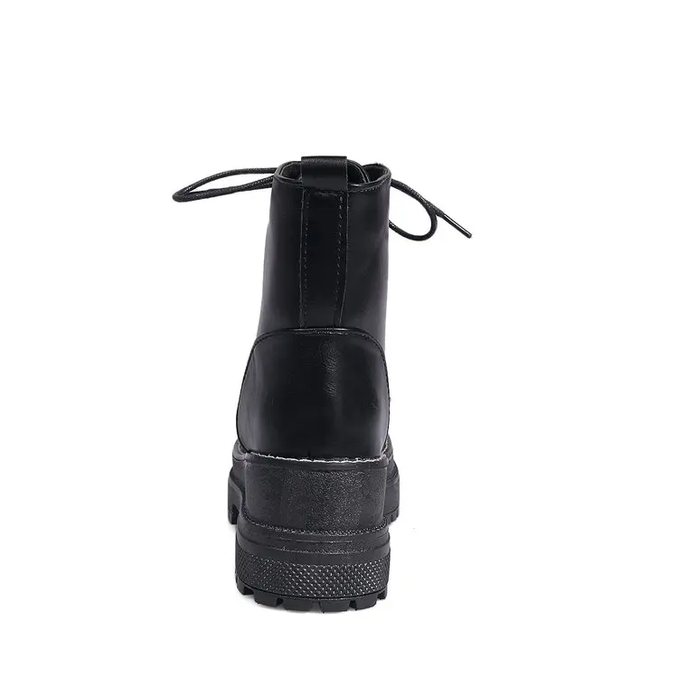 Special Offer Aleafalling botas de mujer Flock 6cm de tacón alto con cordones negro suave zapatos de cuero señora sólido al aire libre zapatos de niña 2 colores AWBT11 Discount 15% Today!