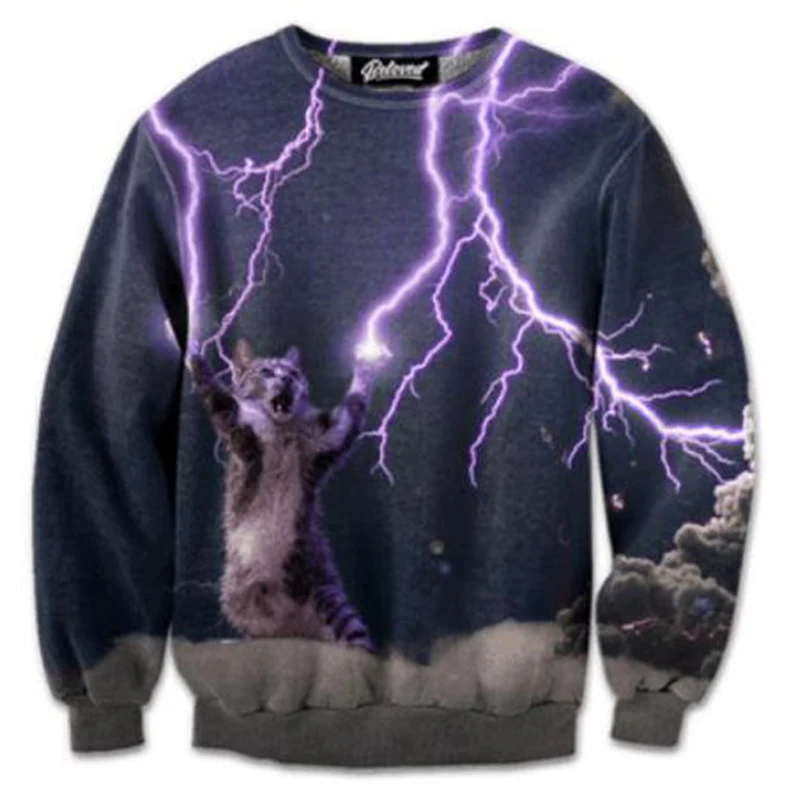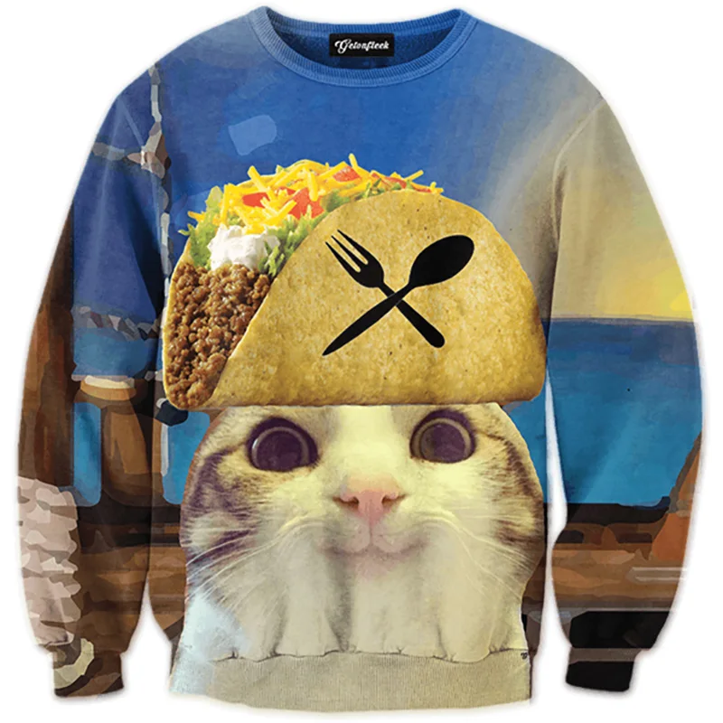 Special Offer Cloudstyle 2019 Animal divertido 3D sudaderas hombres manga larga láser gato Pizza gato impresión moda Pullover Harajuku Streetwear camisetas Discount 30% Today!