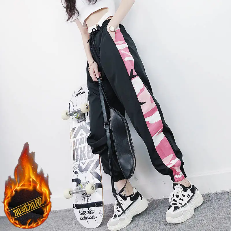 Special Offer Nuevo Casual holgado negro pantalones de chándal para mujer Joggers Patchwork rayas pantalones de chándal estampado de cintura alta pantalones Streetwear Mujer Discount 30% Today!