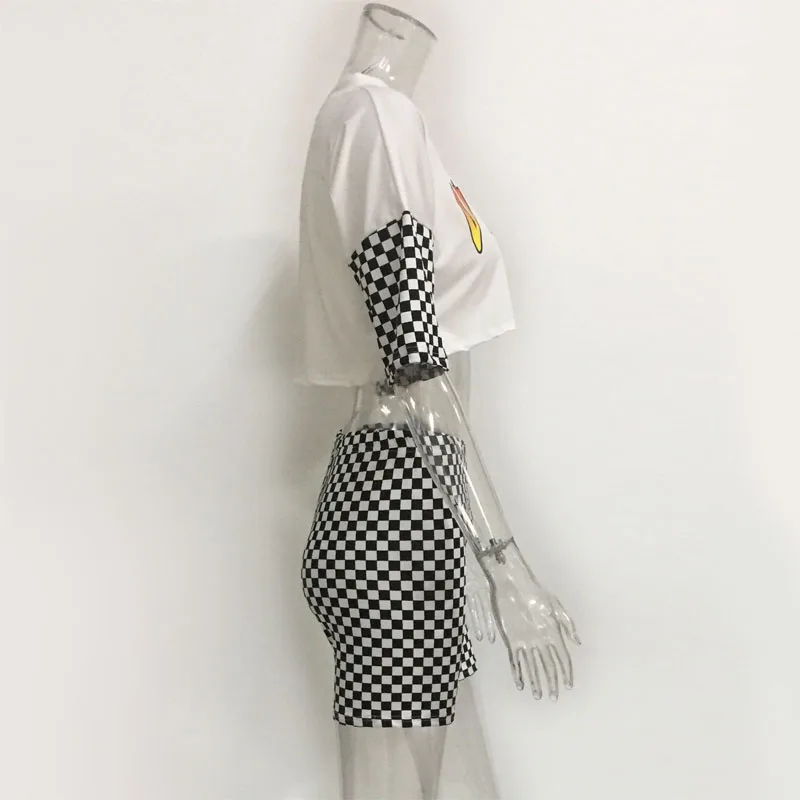 Special Offer Sexy carta Top cuadros Vestido corto de 2 piezas conjunto de verano Mujer ropa chándal de dos piezas traje de las mujeres conjunto de traje de DG018 Discount 34% Today!