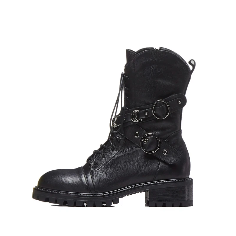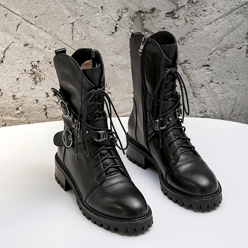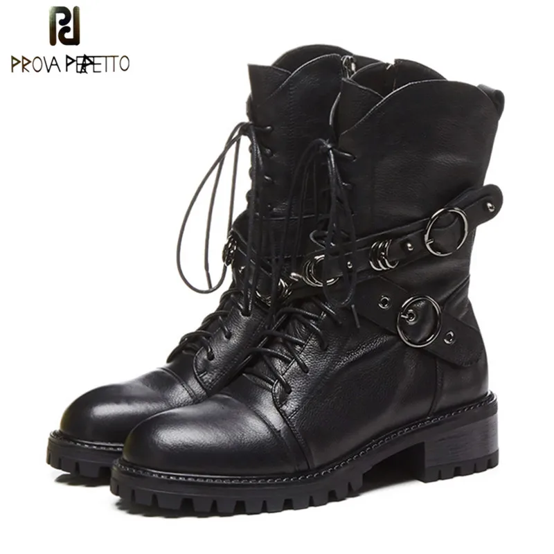 Special Offer Botines de mujer de cuero genuino de alta calidad Prova Perfetto botas de plataforma con cordones botas de moda Punk con cremallera zapatos planos Discount 44% Today!