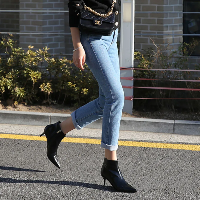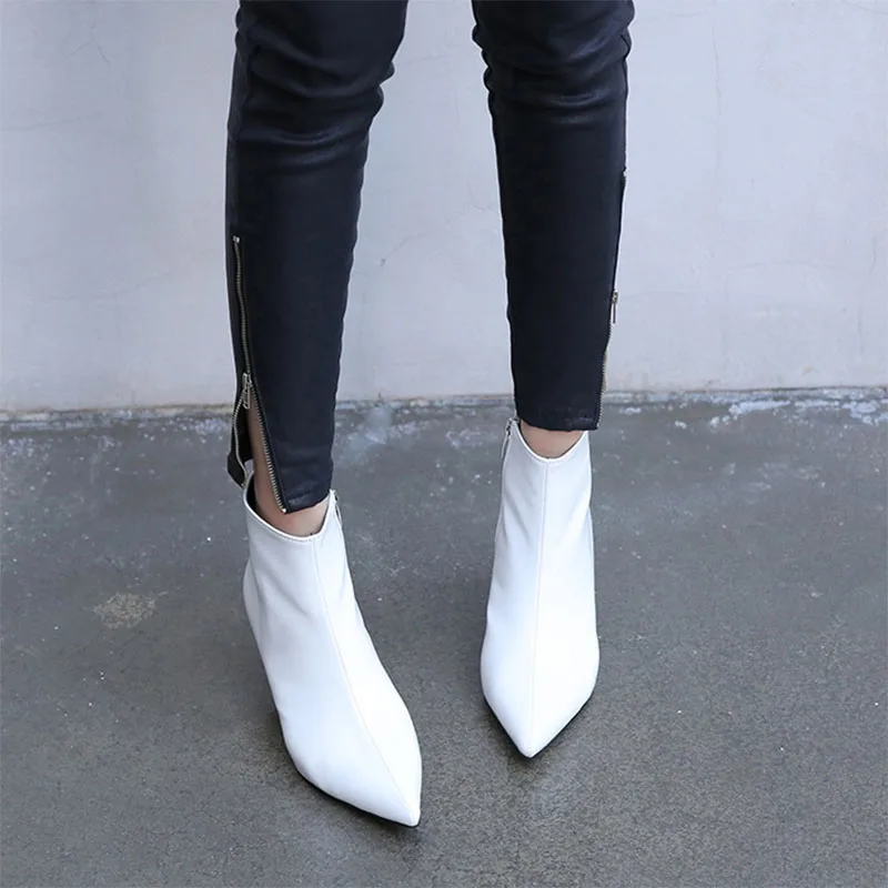 Special Offer Botas de tacón puntiagudos blanco otoño e invierno nuevas botas Martin de tacón fino botas desnudo botas de mujer botas de primavera Discount 48% Today!