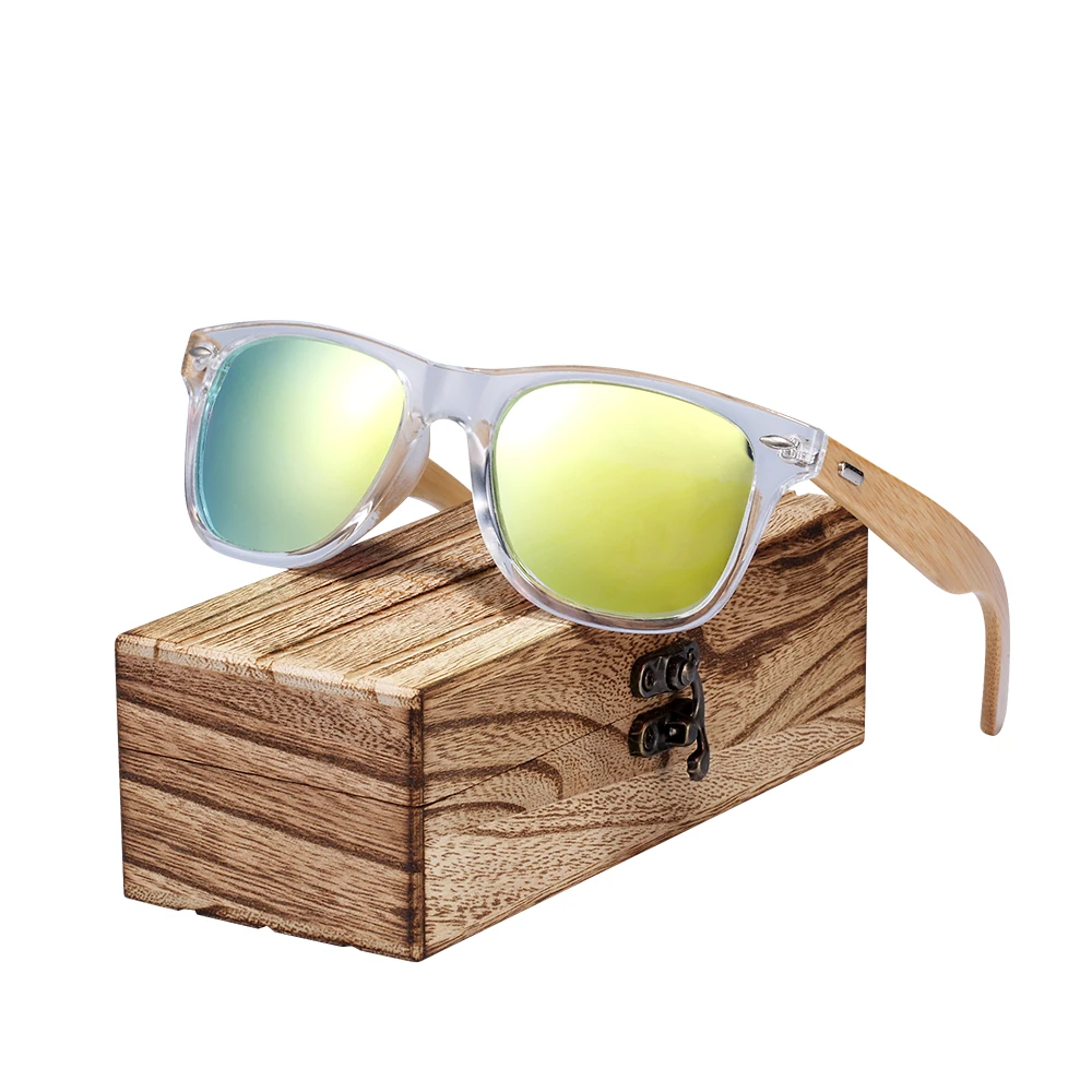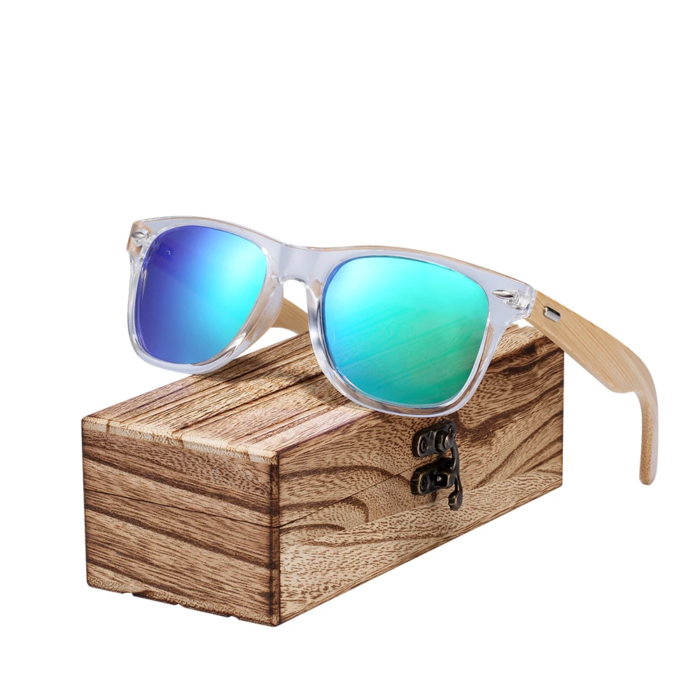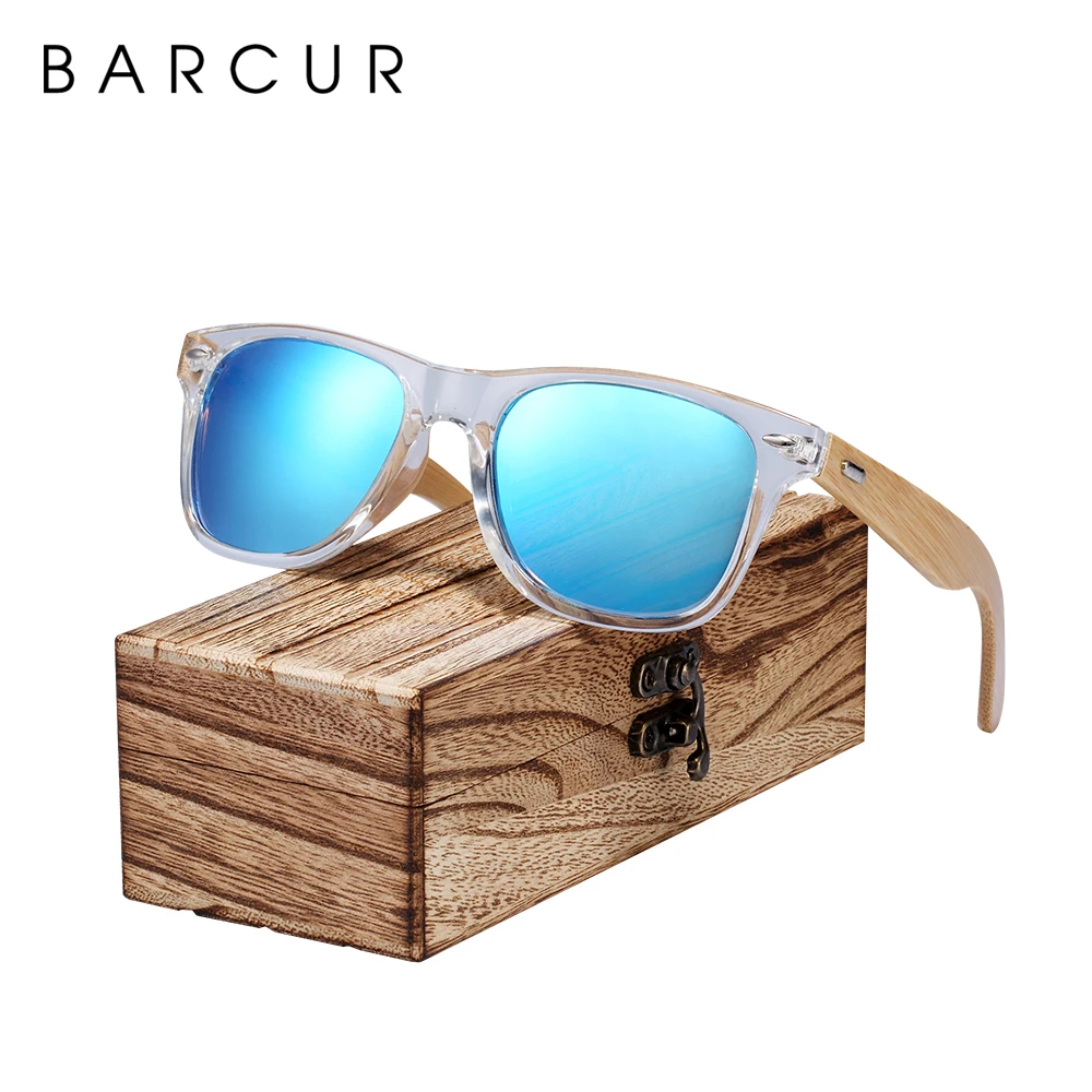 Special Offer BARCUR gafas de sol clásicas de bambú Marco de plástico transparente de madera gafas de sol polarizadas con caja gratis Discount 49% Today!