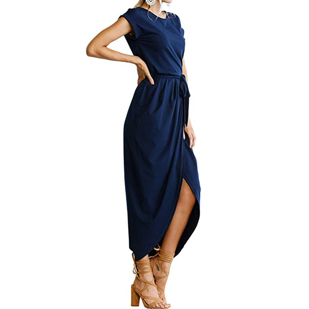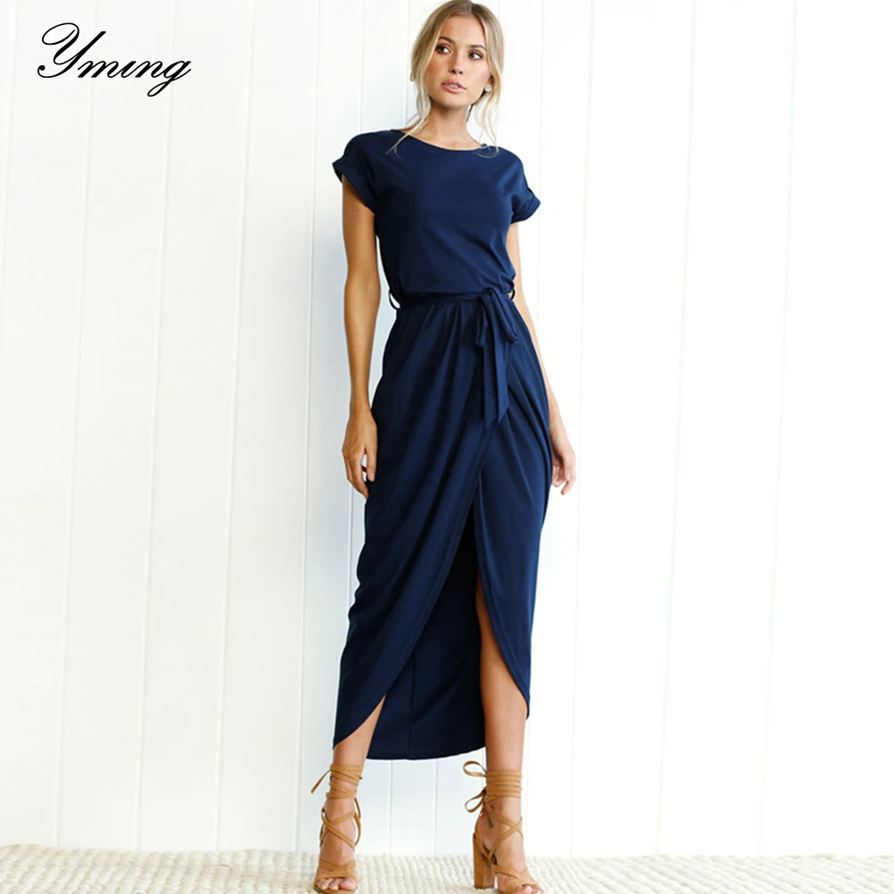 . (49% Off) Comprar Yming mujeres verano alto Split vestido Polka Dot largo Maxi vestido Sexy V cuello playa vestido Boho fajas señora blanco Vestidos Online Baratos.
