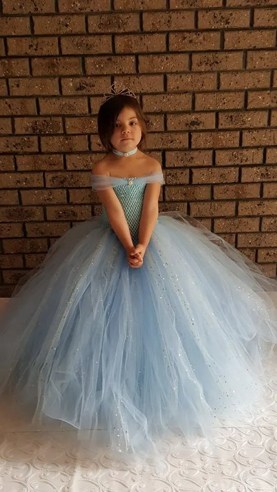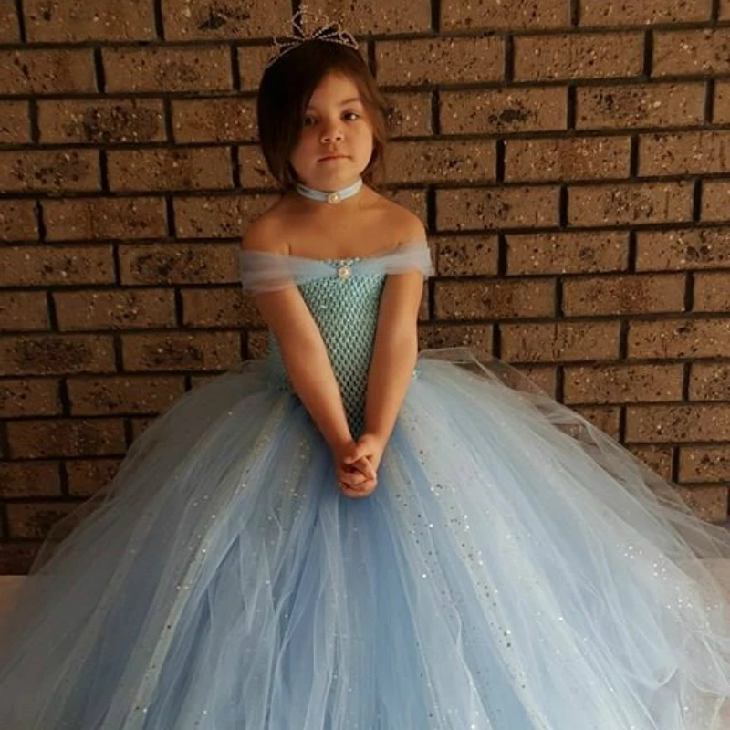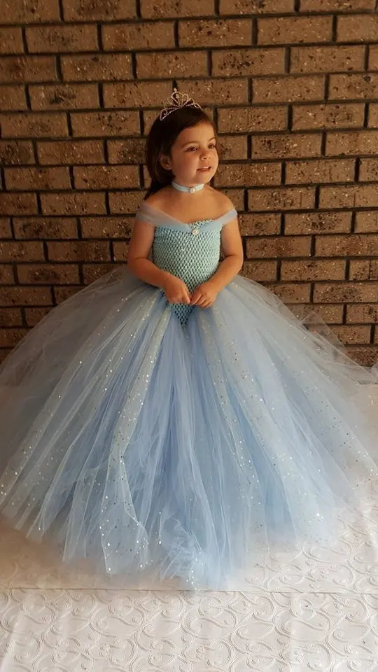 Special Offer Vestido de tutú de fiesta de tul azul claro brillante para niñas vestido de bola de brillo azul impresionante para niñas vestido de niña de flores para boda Discount 28% Today!